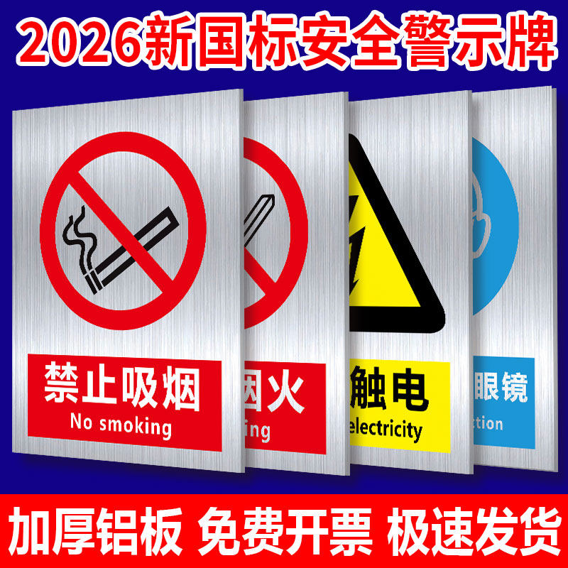 📚 铝板反光膜标识牌2026新国标铝制安全生产警告标志警示牌工厂车间施工标语标牌修订版仓库消防标识提示牌定做