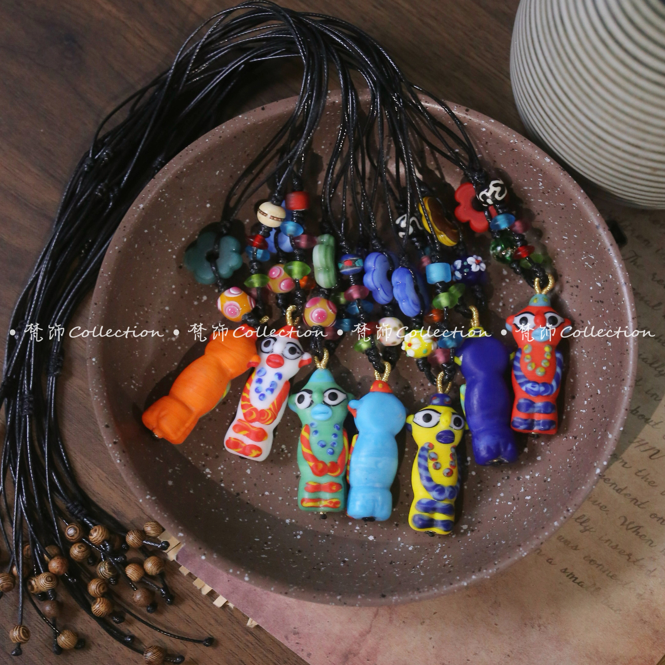 📚 尼泊尔手工琉璃搞怪腓尼基娃娃琉璃吊坠设计感民族风毛衣叠搭项链