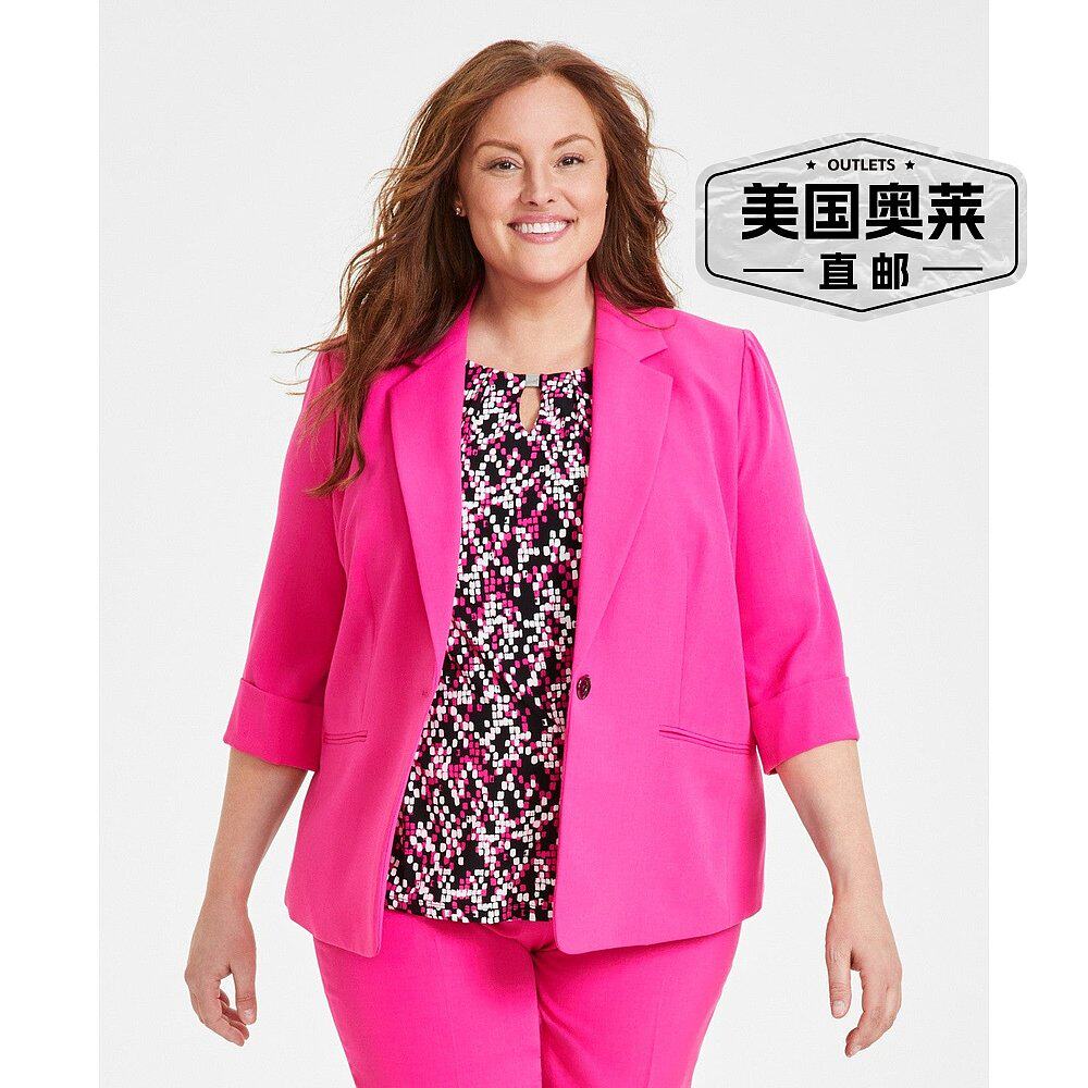 📚 自营Kasper Blazer夹克女式粉色弹力34袖单扣FTS1347-粉红色 美国