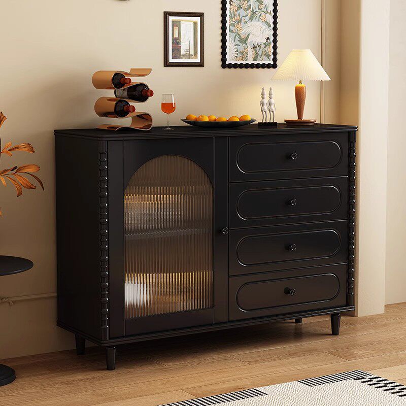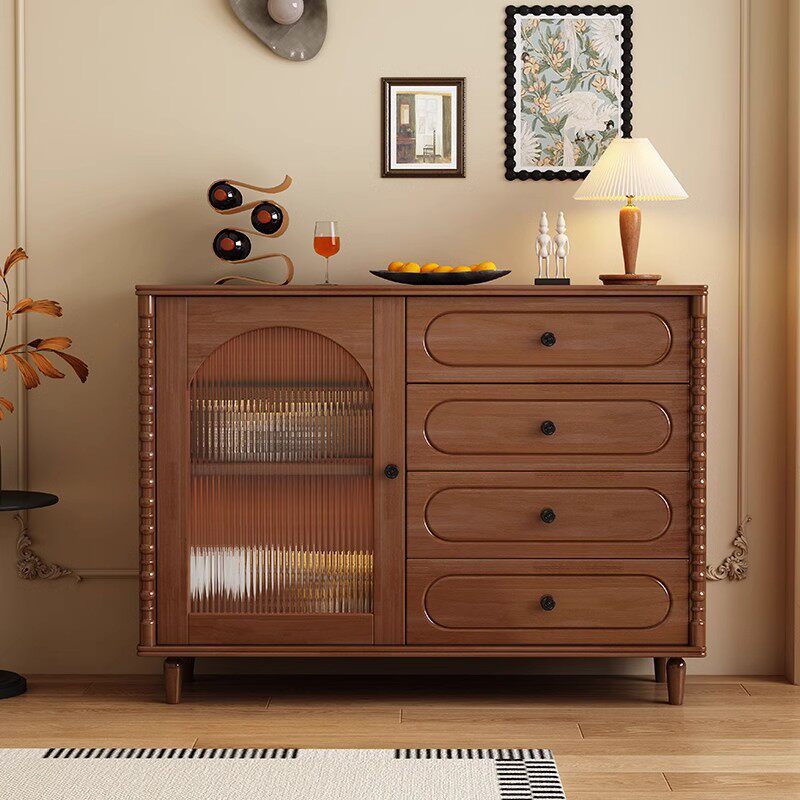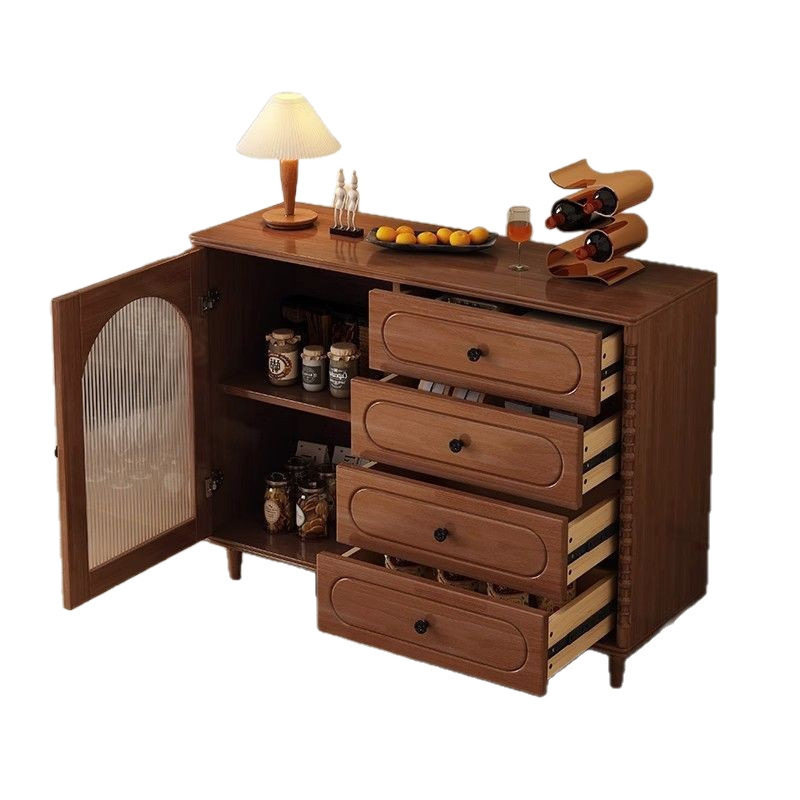 📚 中古风客厅实木收纳储物柜靠墙一体家用厨房餐边柜置物架2025新款