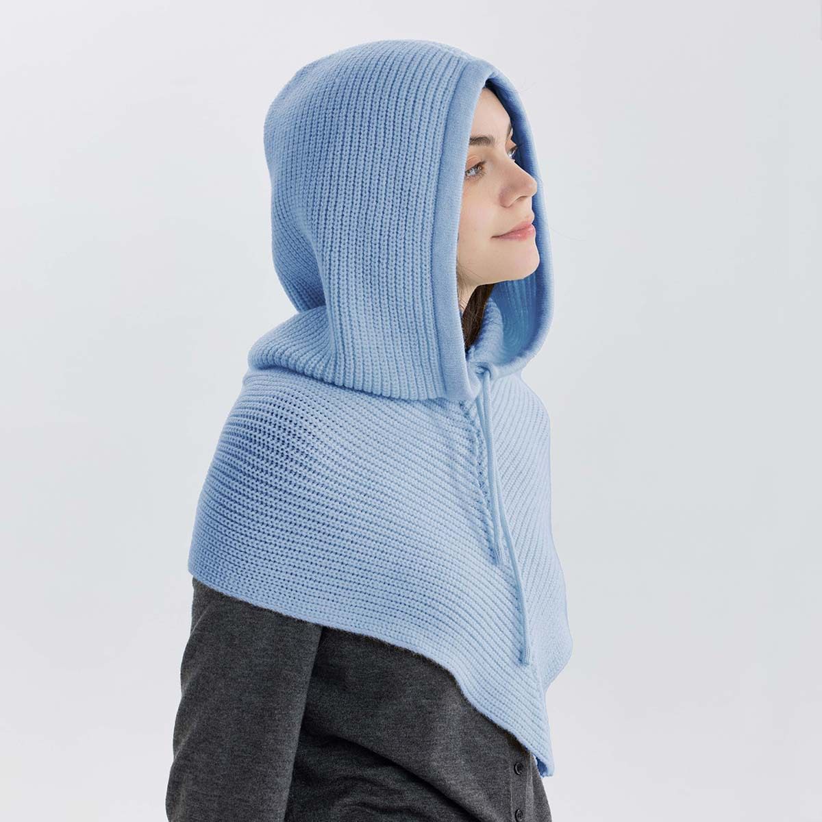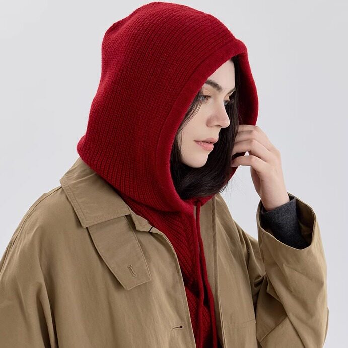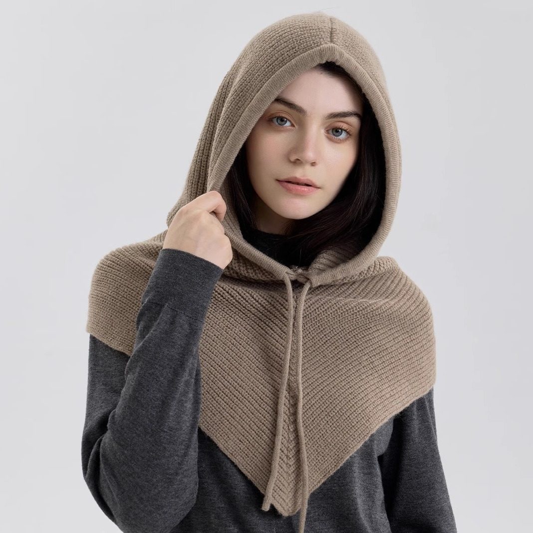 📚 新款假帽子领连帽一体围脖女巴拉克拉法针织帽男毛线领子大头围巾