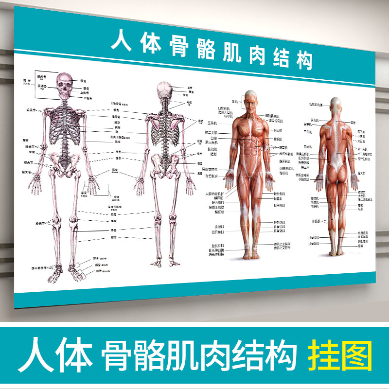 📚 人体骨骼结构图全身肌肉解剖内脏系统示意图医学结构分布彩色挂图