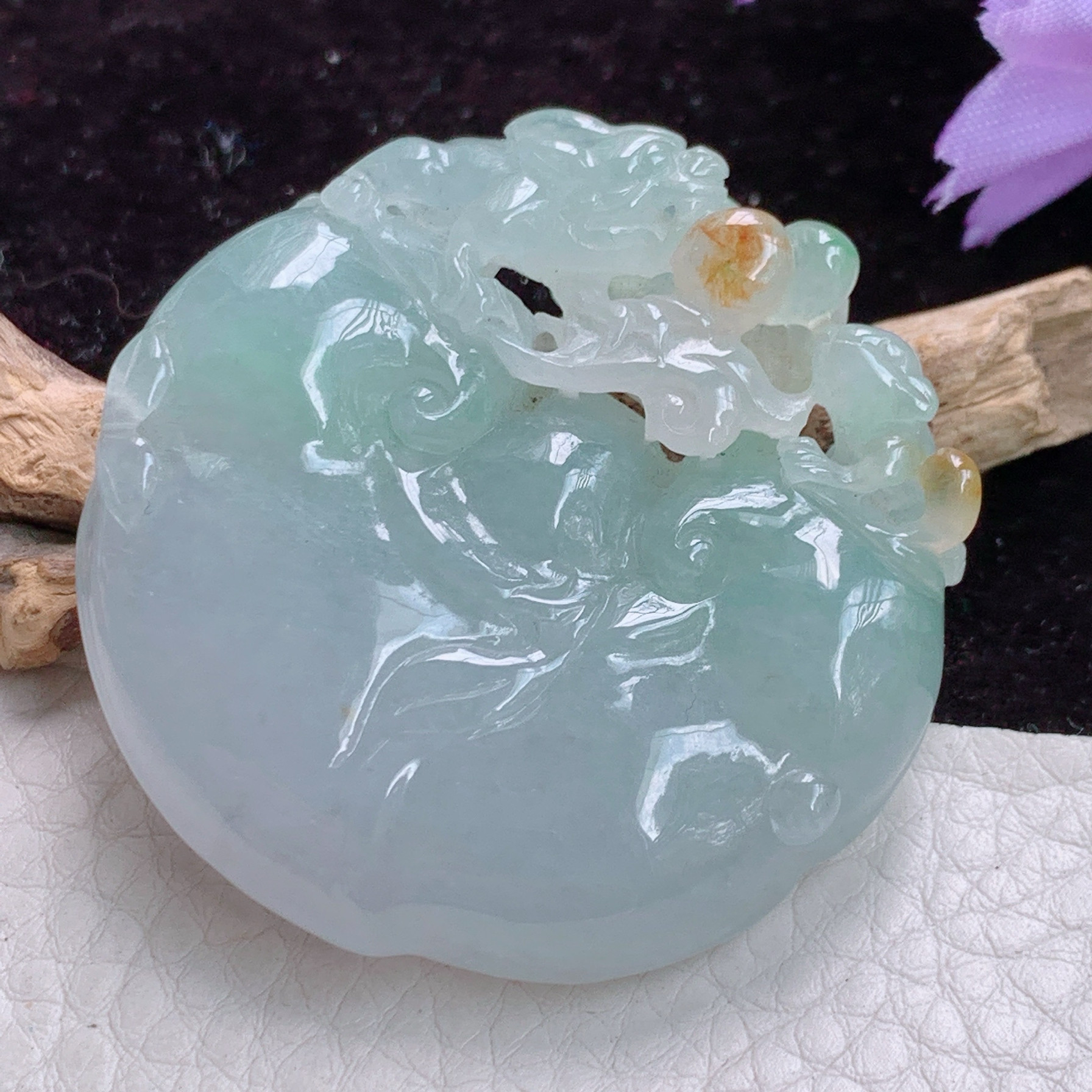 📚 ws实拍47.6*47*12天然翡翠有求必应 冰胶三彩貔貅玉吊坠 厚毛衣坠