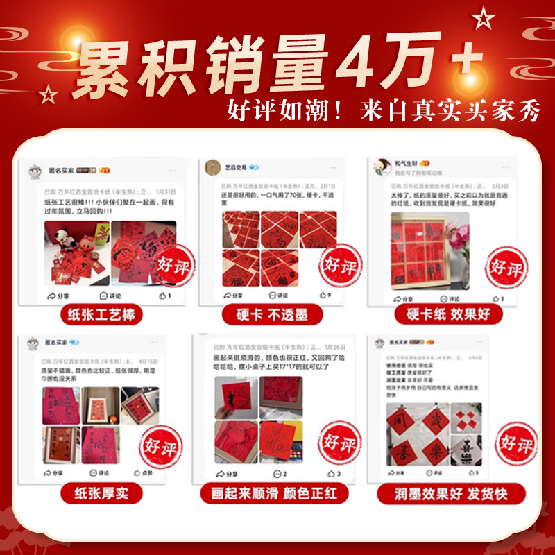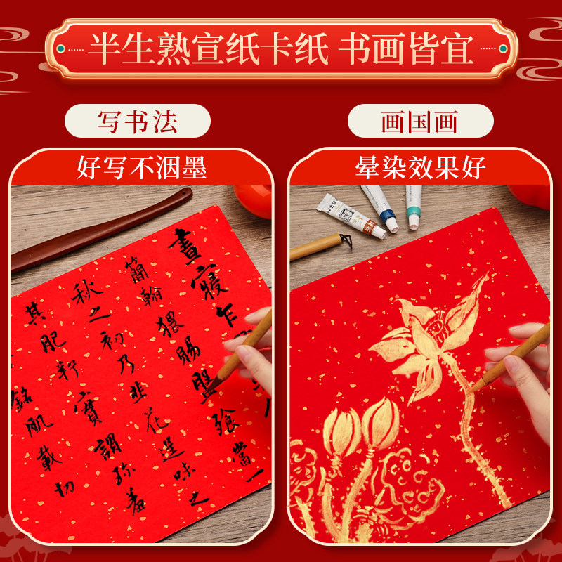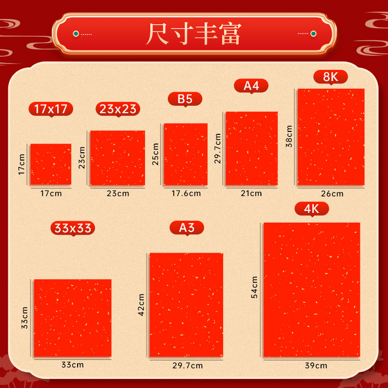 📚 8K万年红卡纸红色洒金萱纸书法专用加厚福字斗方作品纸国画毛笔空白手写创作纸A3A4对联小春联纸半生熟婚书