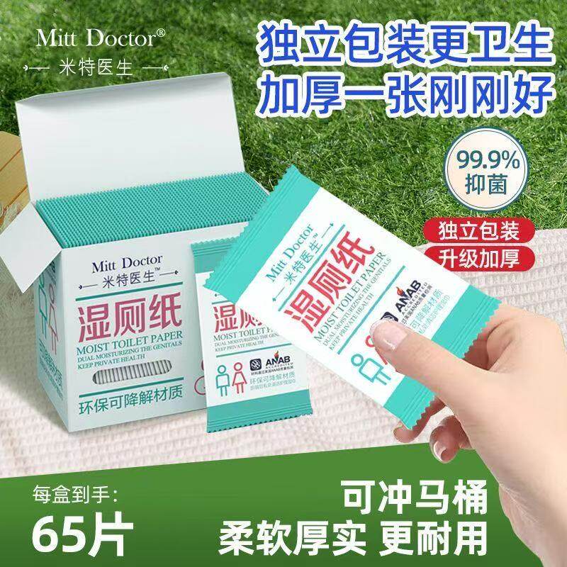 📚 米特医生湿厕纸盒装便携式小包独立包装可降解冲马桶65片洁厕湿巾