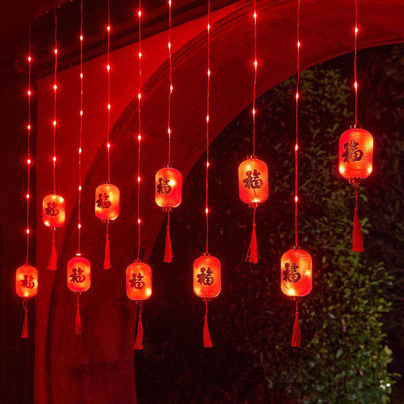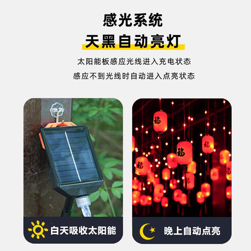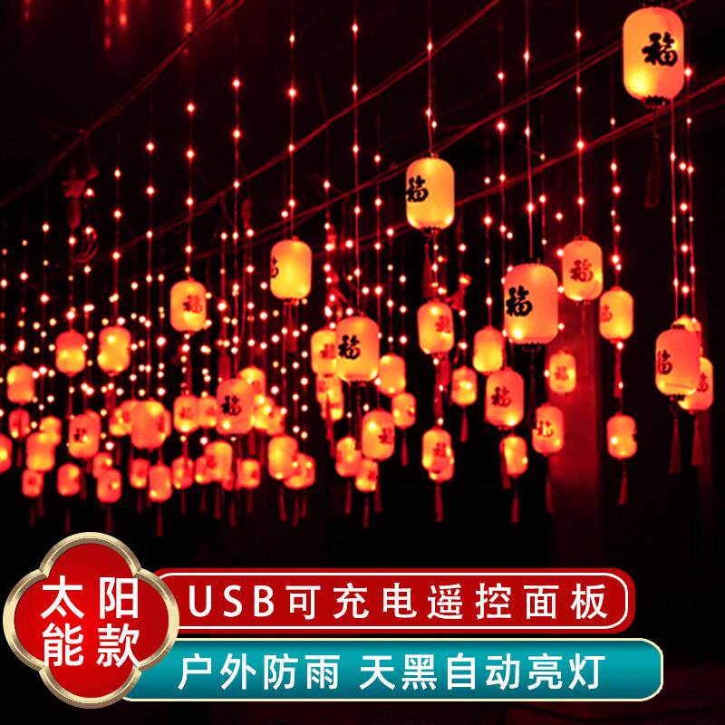 📚 太阳能氛围庭院插电红灯笼挂饰新年春节结婚装饰户外红喜防水灯串