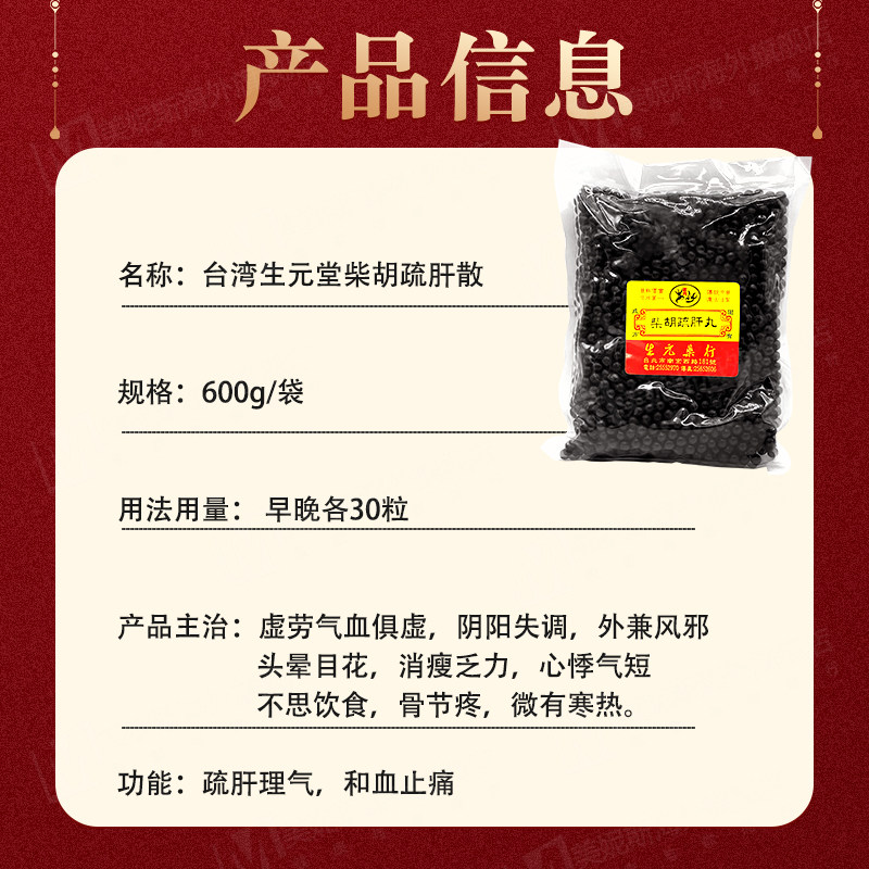 📚 台湾生元药行柴胡疏肝丸疏肝解郁消胀止痛理气健脾柴胡舒肝散丸