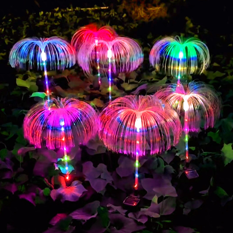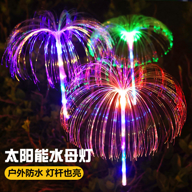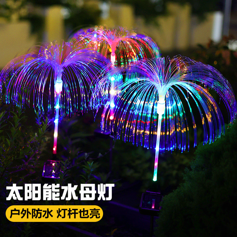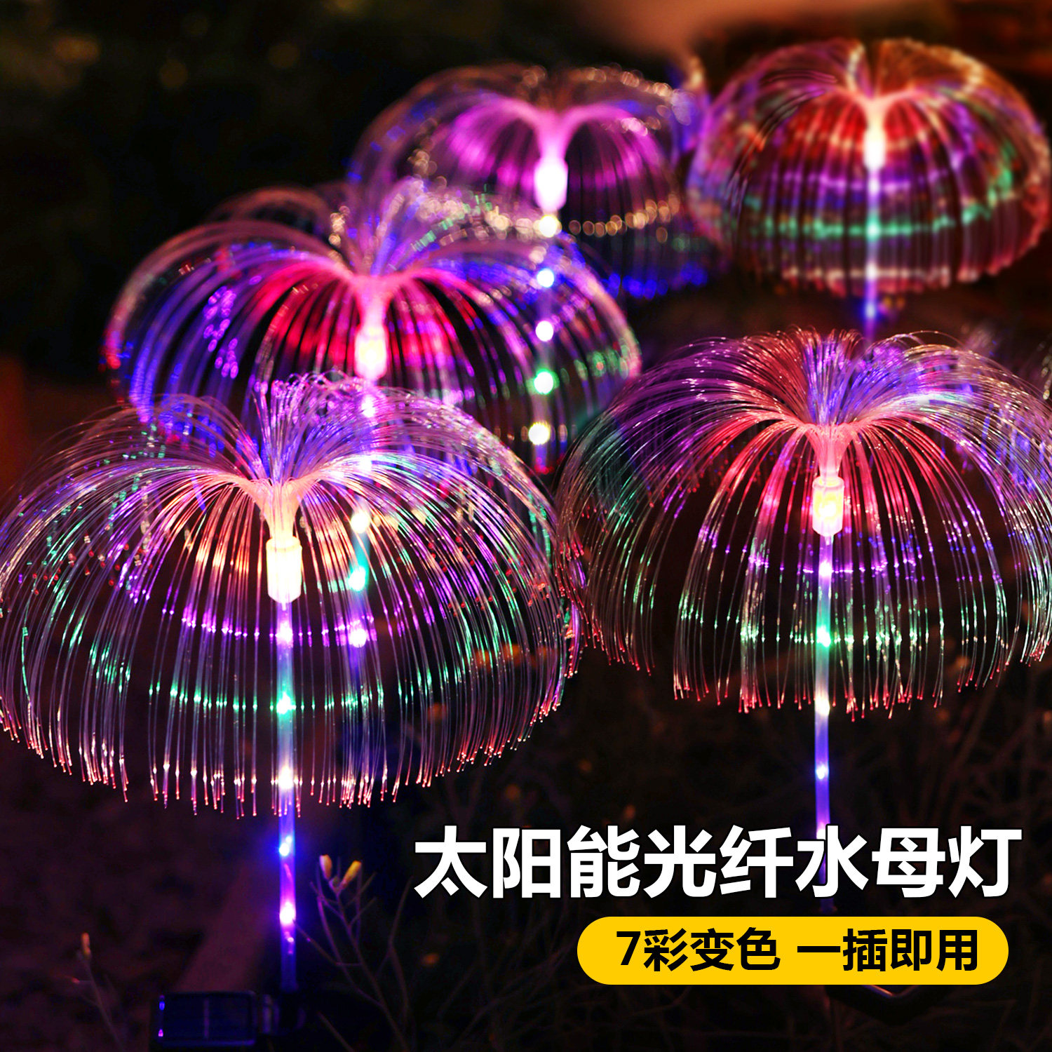 📚 太阳能光纤水母灯七彩变色庭院花园景观灯户外装饰防水插地草坪灯
