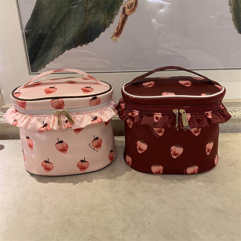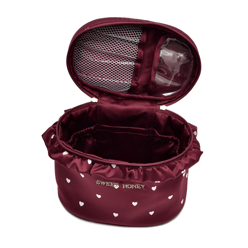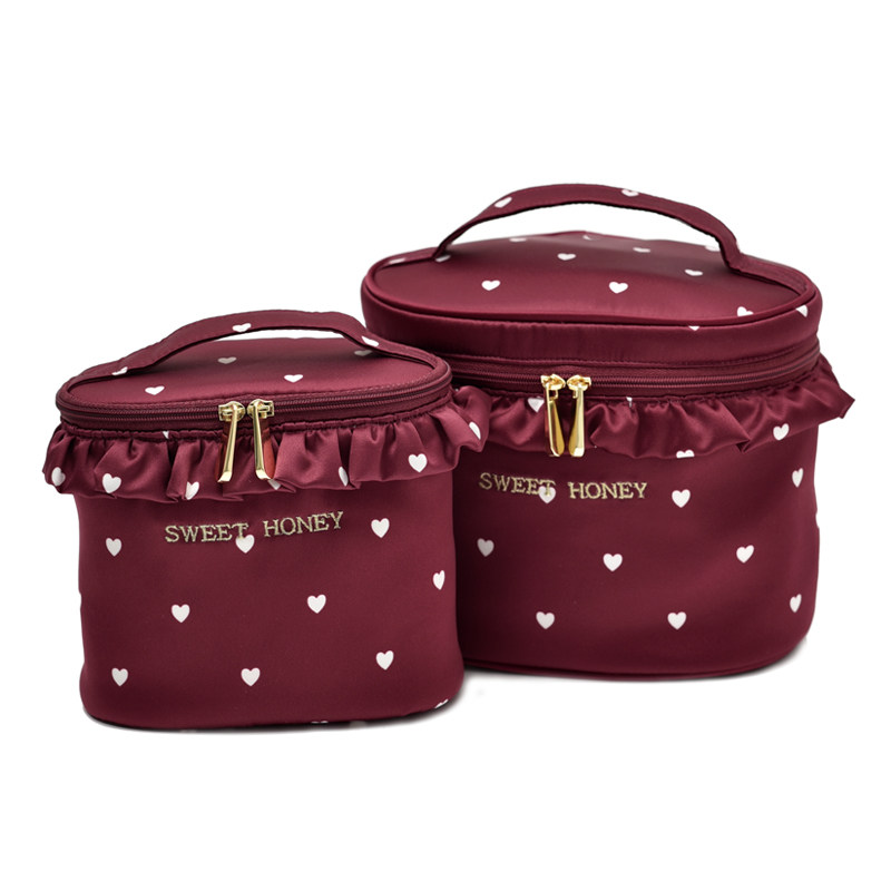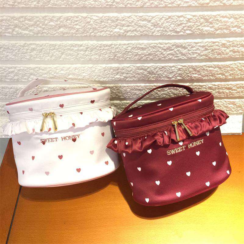 📚 甜美爱心花边立体化妆包旅行收纳便携小号手提化妆包桶包大小可选