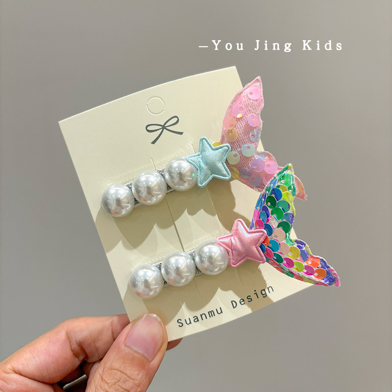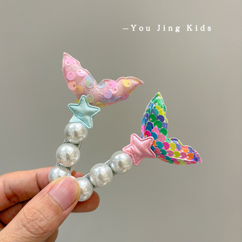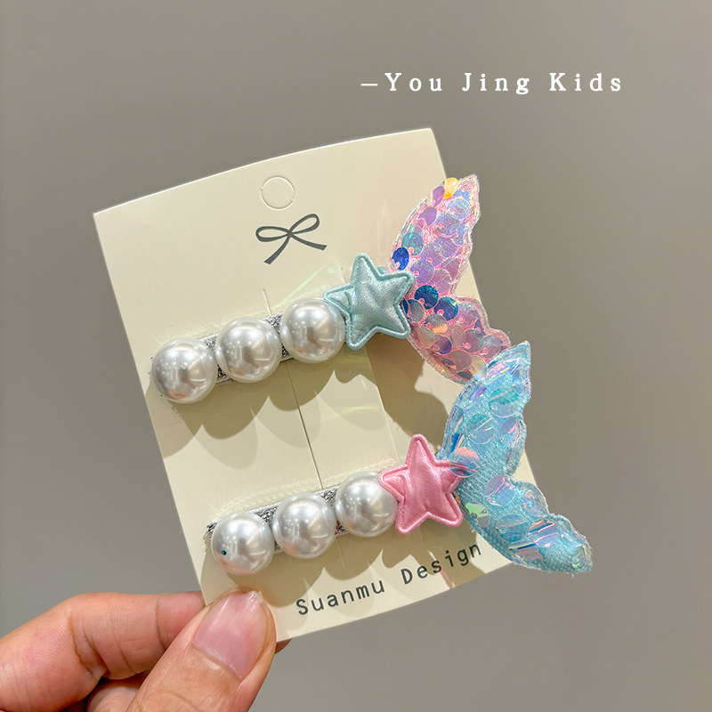 📚 可爱儿童美人鱼刘海夹发卡小女孩公主亮片鱼尾碎发发夹后脑勺头饰