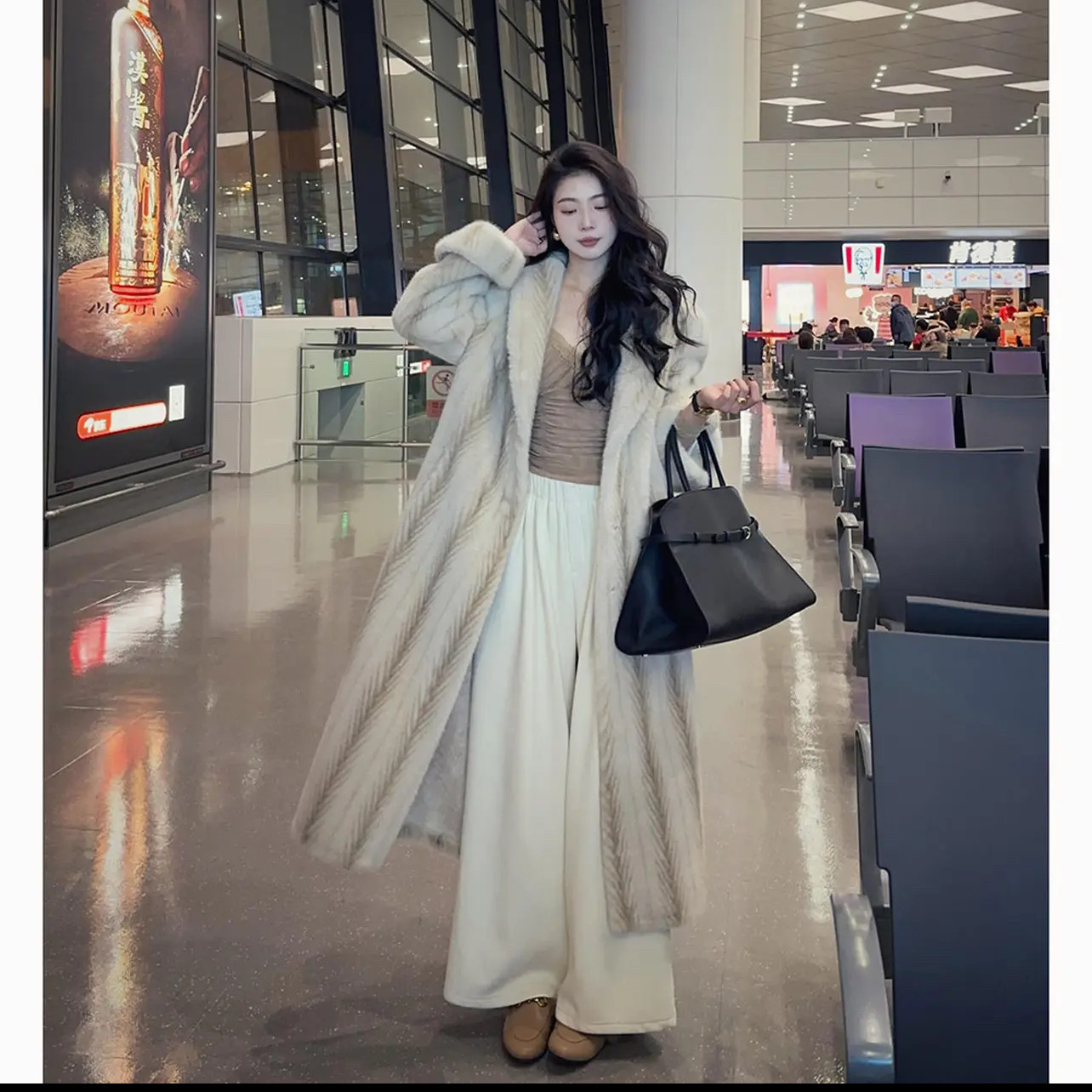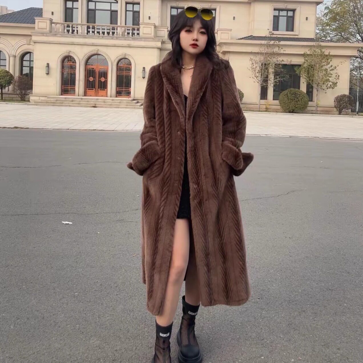 💥种草!富家千金必备的“鱼骨纹环保皮草仿水貂毛长款外套”💖券后仅199!