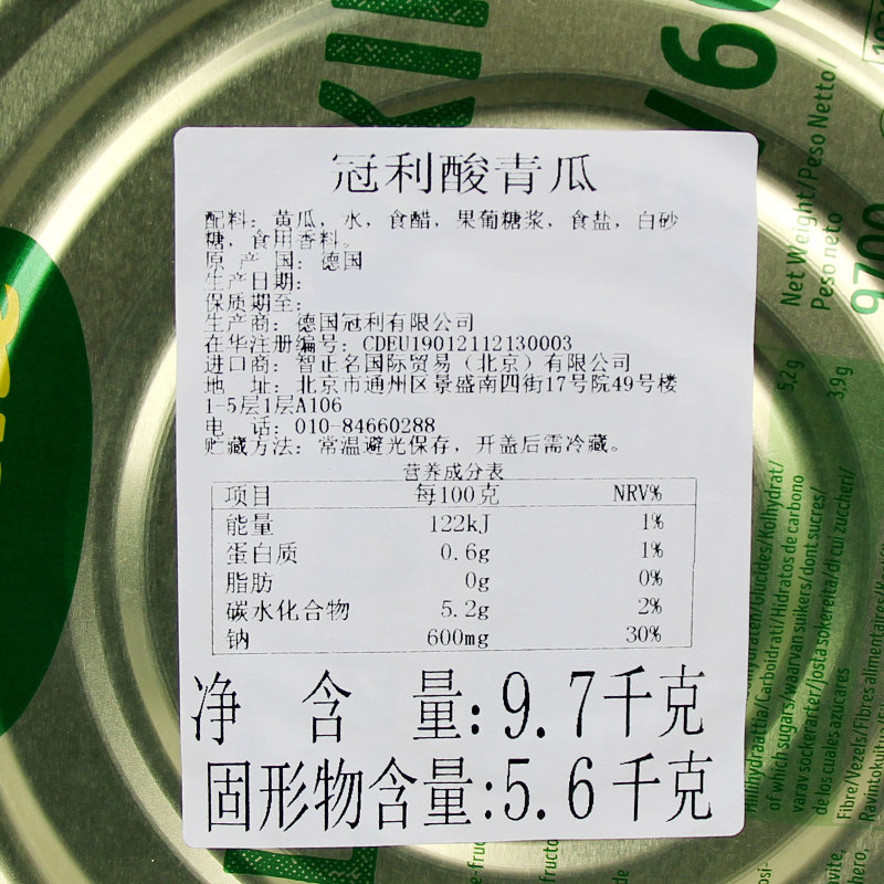 📚 冠利酸青瓜9.7kg酸黄瓜商用大包装桶装汉堡热狗俄式酸青瓜片商用