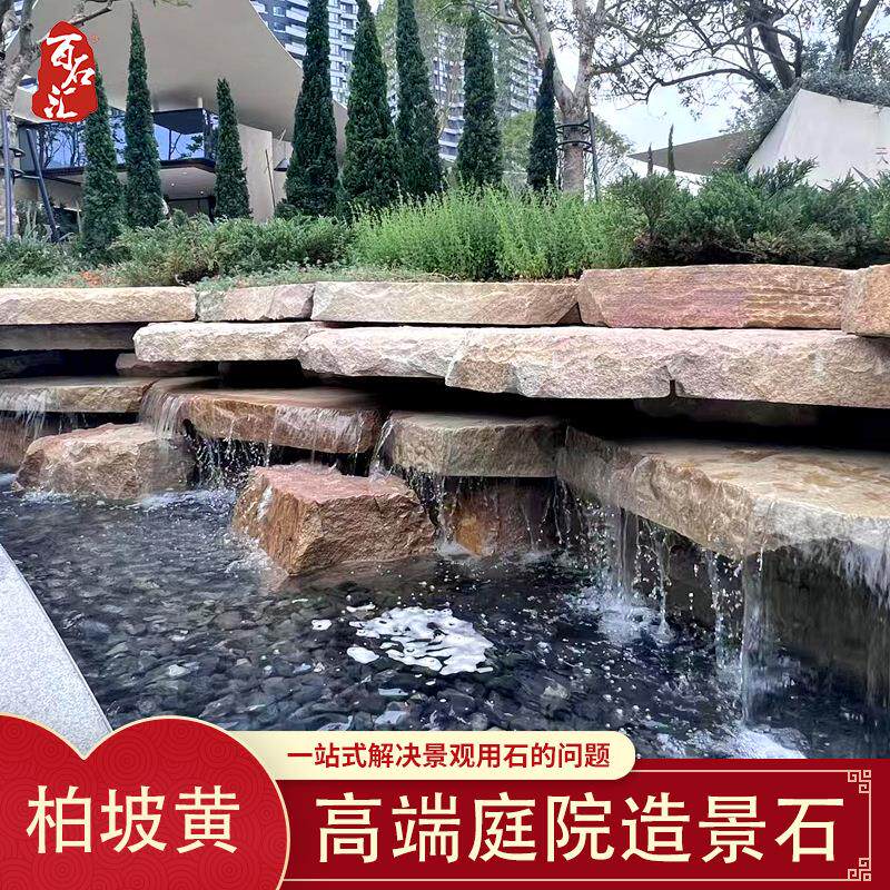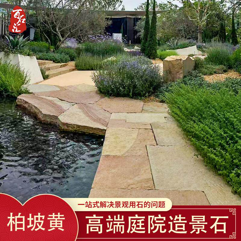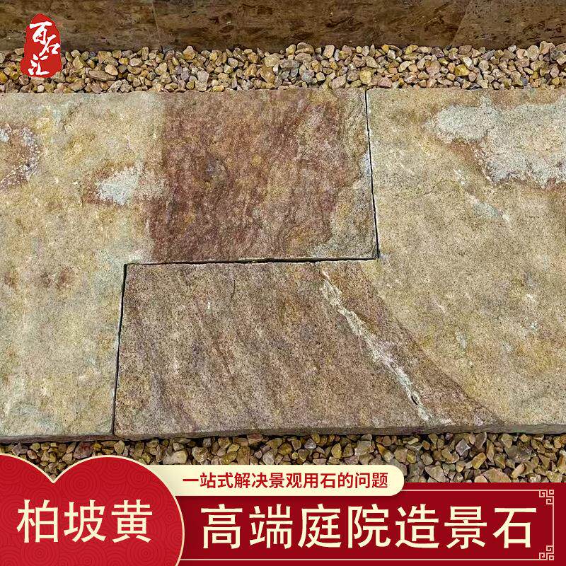 📚 柏坡黄碎拼不规则地铺示范区造景石太行金石皮自然面铺路石景观石
