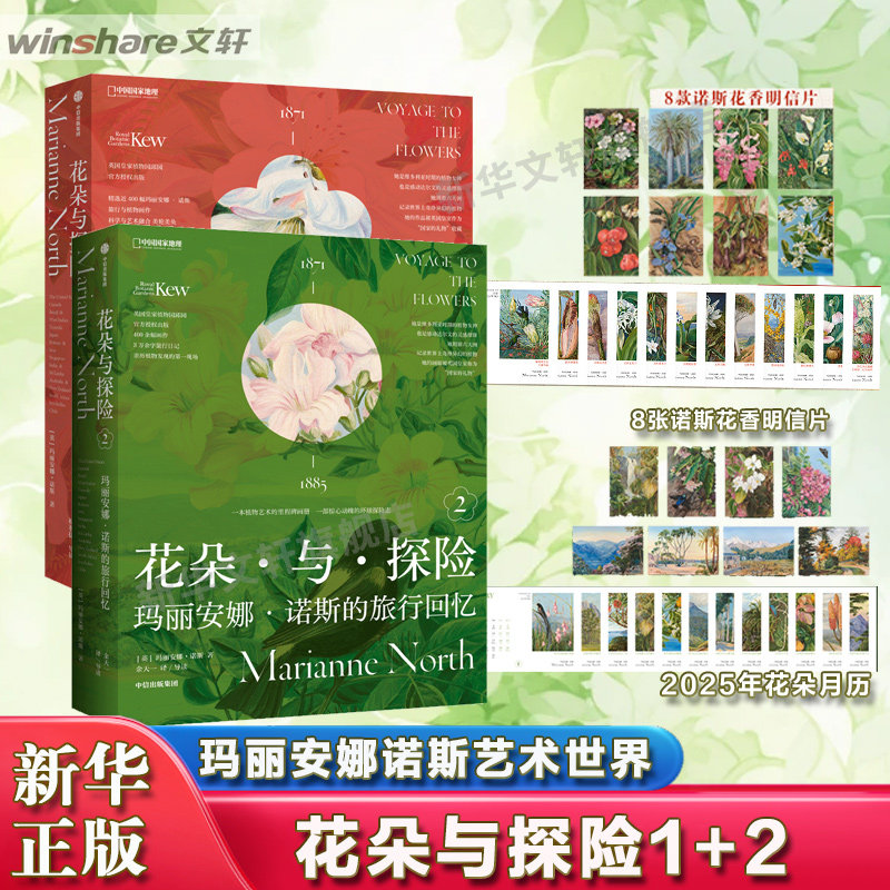 📚 【2册套】花朵与探险1+2 玛丽安娜·诺斯的艺术世界+旅行回忆 共收录800余幅画作展示诺斯画廊全部作品植物科普书籍艺术插画集
