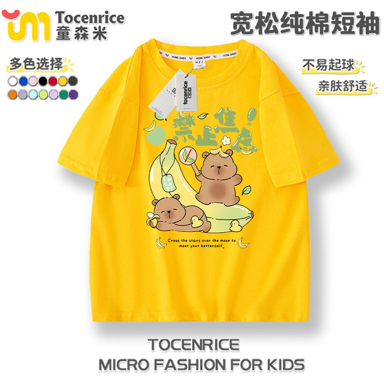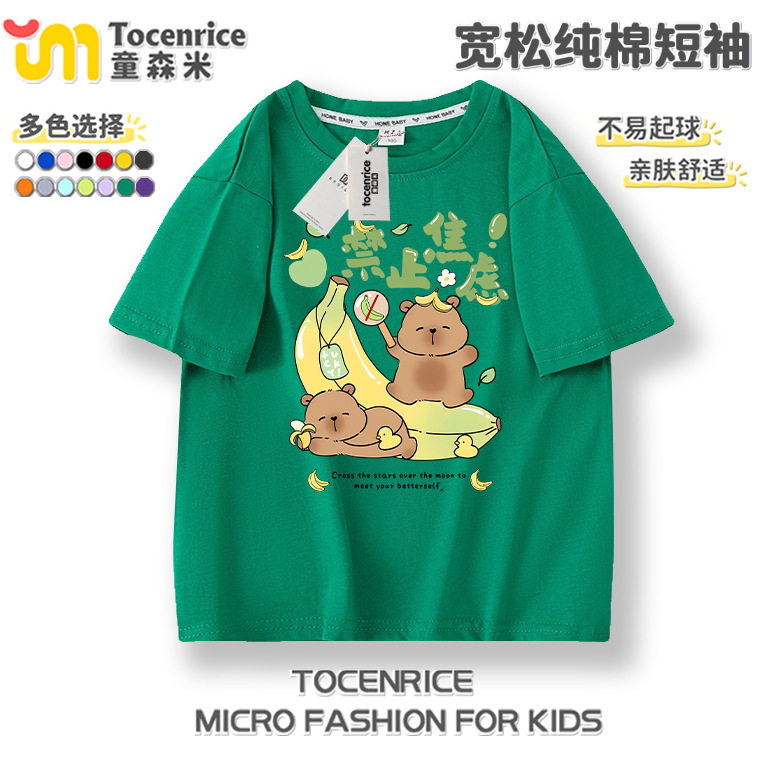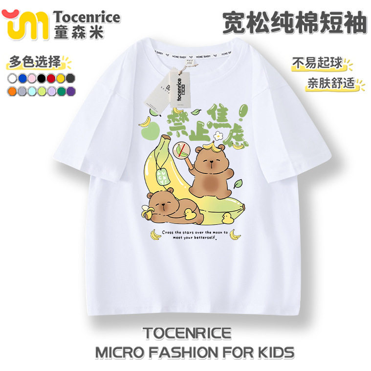 📚 新款呆萌水豚卡皮巴拉男女童T恤纯棉短袖上衣中大童capybara衣服