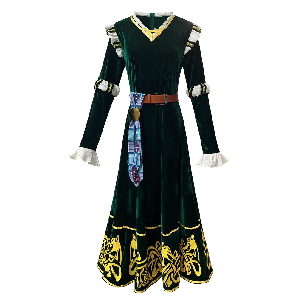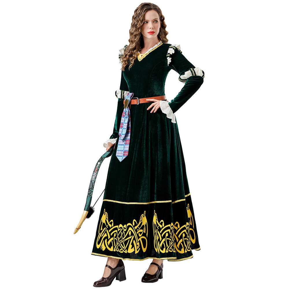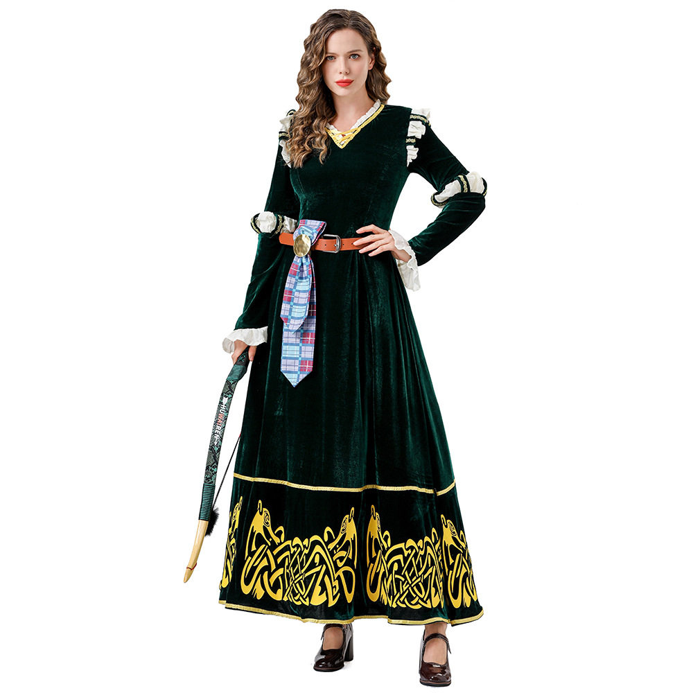 📚 万圣节服装中世纪宫廷风 复古墨绿长裙勇敢传说梅莉达COS角色扮演