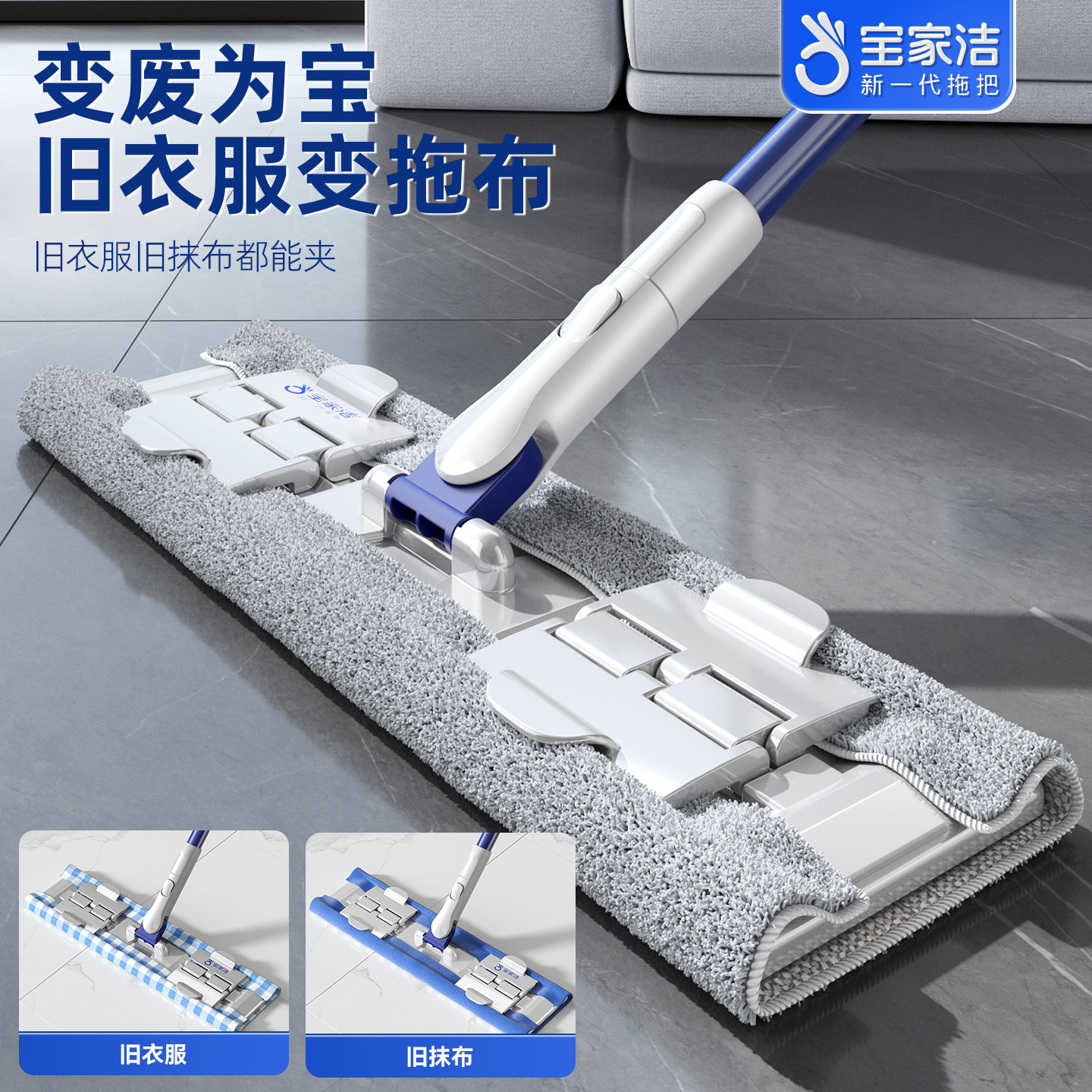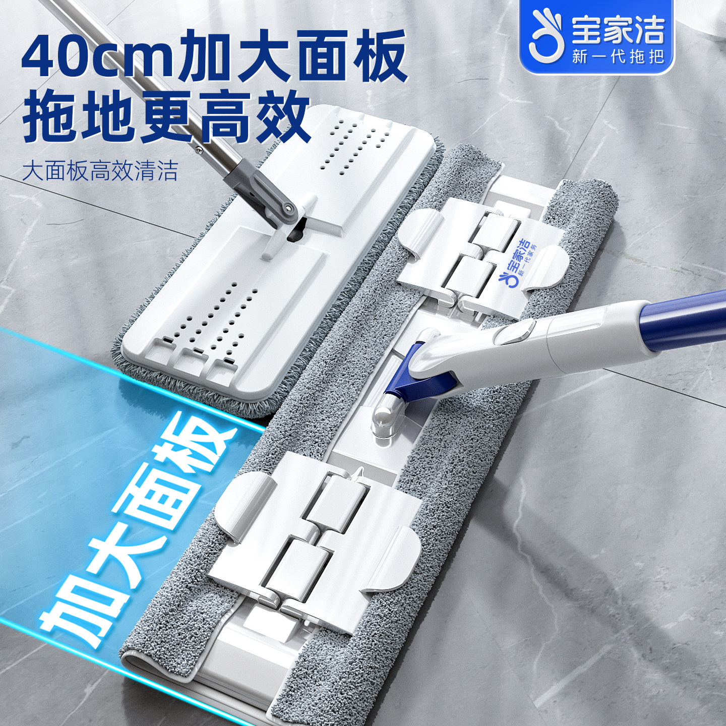 📚 宝家洁夹布平板拖把家用干湿两用夹板式拖布一夹抹布神器拖地拖净