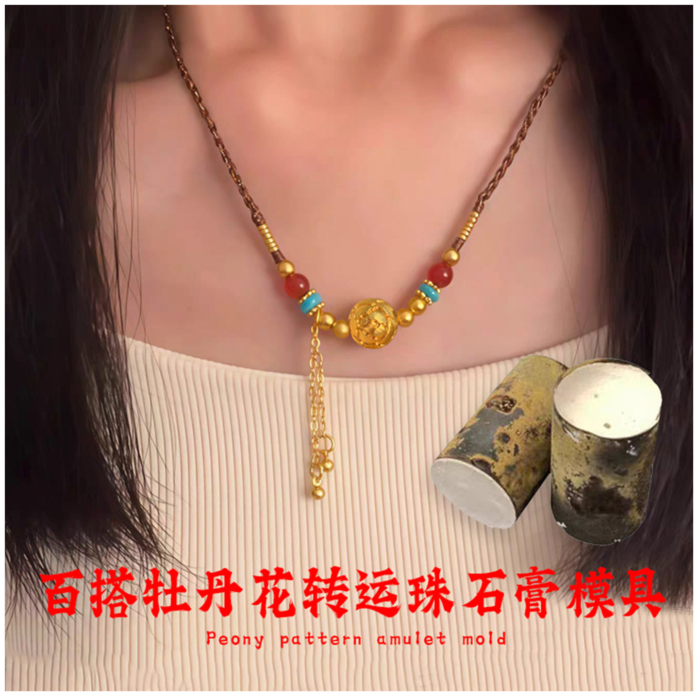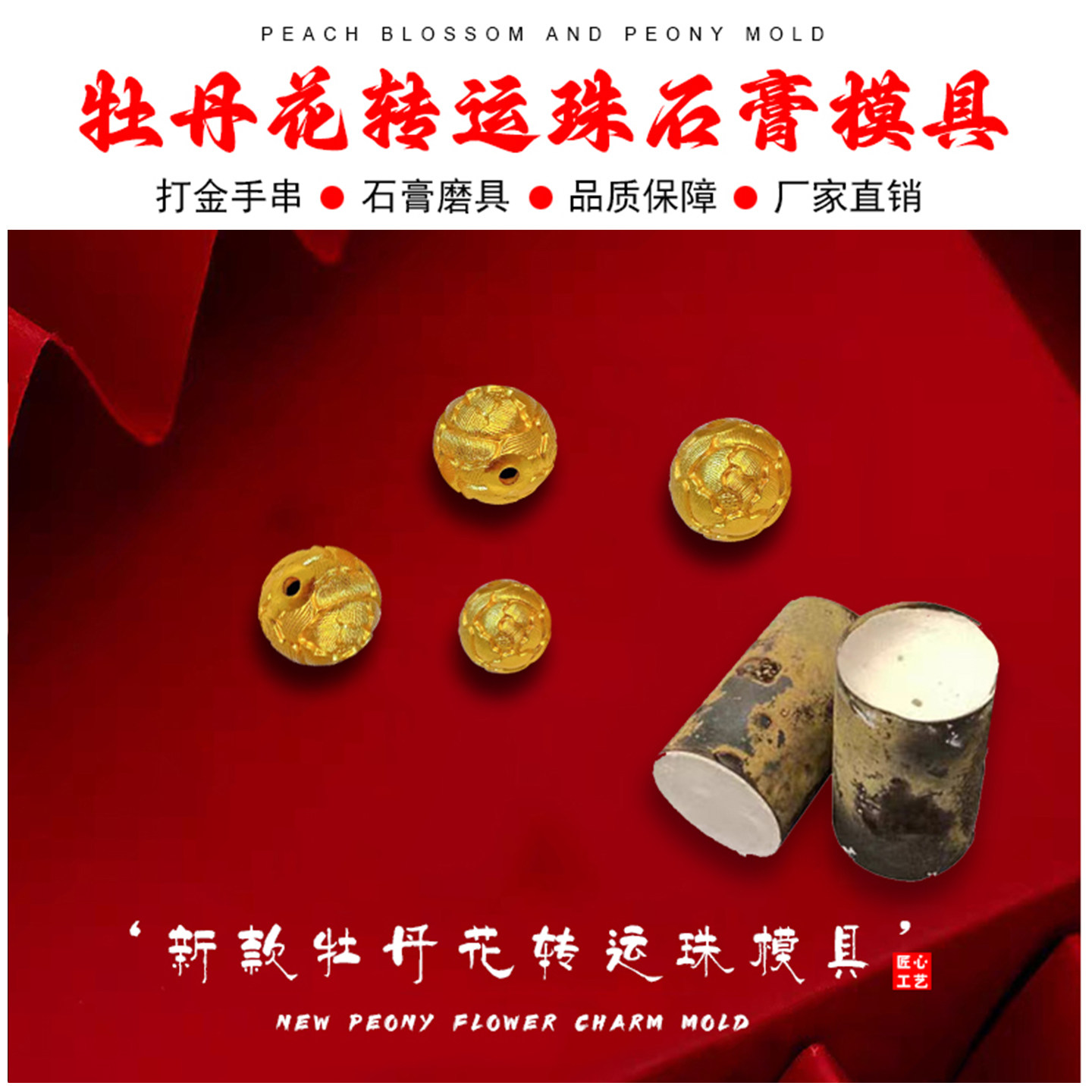 📚 新款牡丹花转运珠石膏模具金银铜首饰倒模diy空心莲花珠打金工具