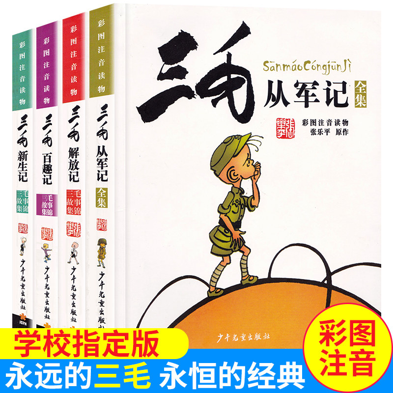 📚 三毛流浪记全集4册 三毛从军记解放记新生记百趣记注音版小学生一二三年级阅读课外书 连环画张乐平著漫画版6-8-12岁儿童书籍