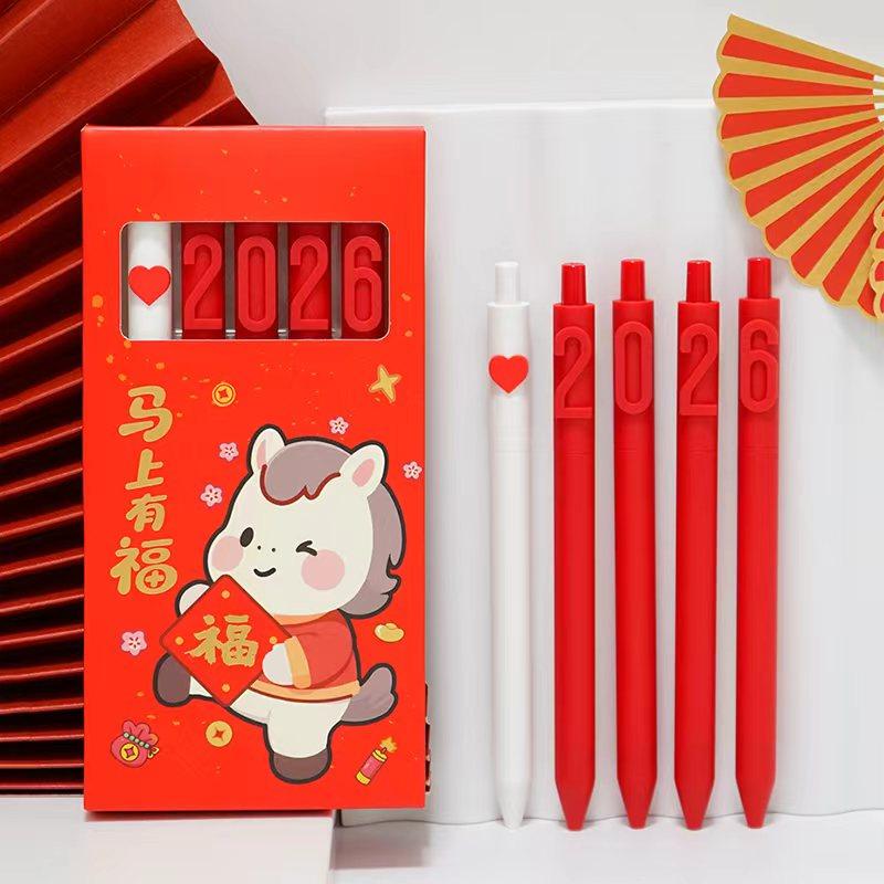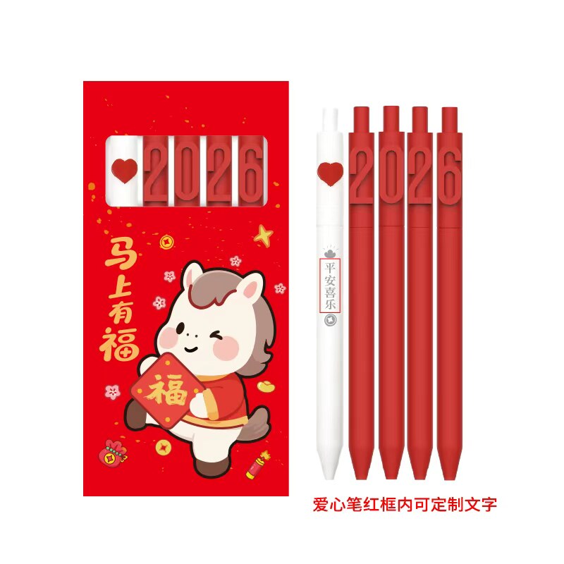 📚 2026元旦新年礼盒套装马年文创字母笔套装送礼开门红学生刷题文具中性笔新年礼品可定制笔考试黑色签字笔红笔