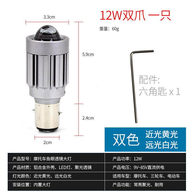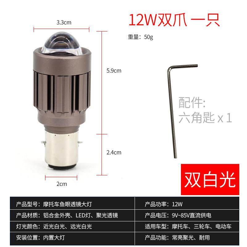 📚 石栏摩托车LED大灯改装透镜灯泡电动车S2双爪三爪H4远近光犀利眼