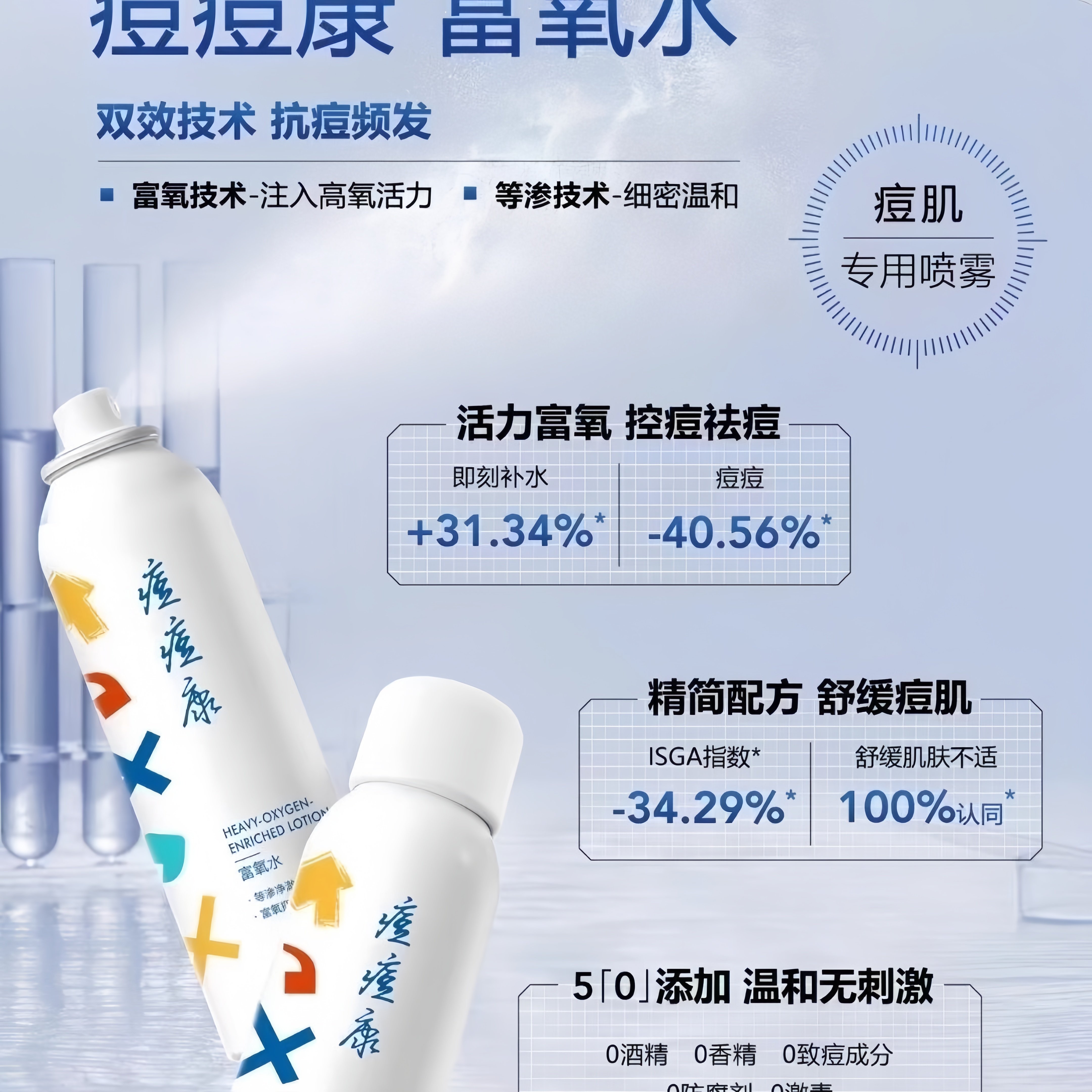 📚 痘痘康富氧水喷雾150ml痘痘改善闭口敏感肌黑头安肤补水保湿修护