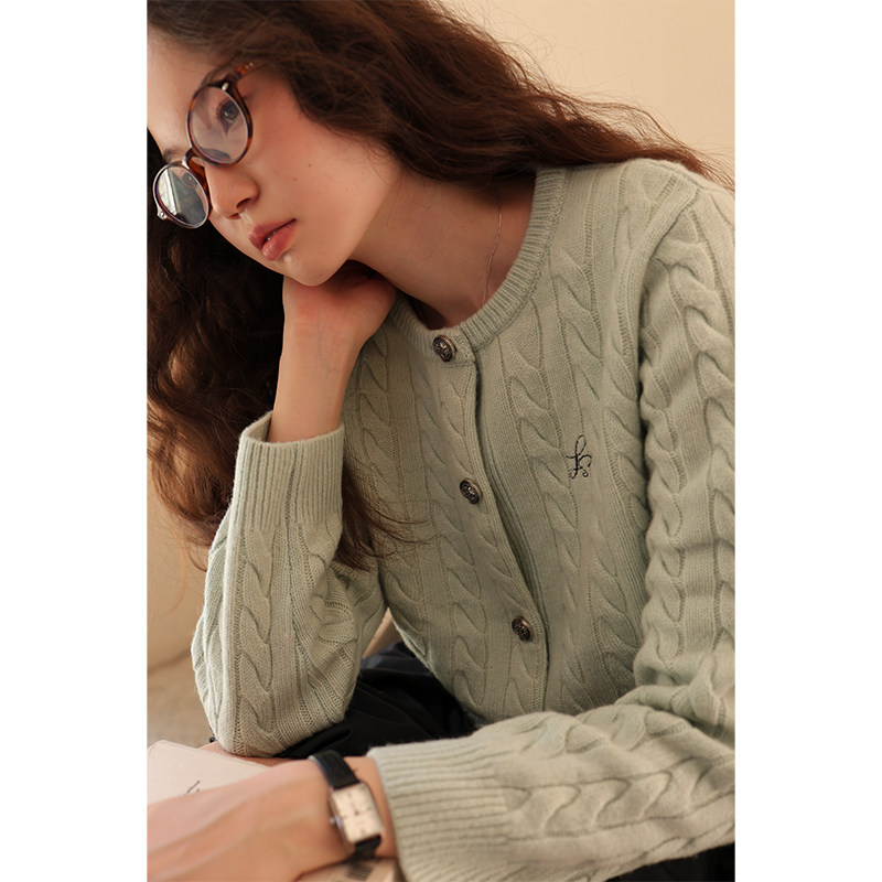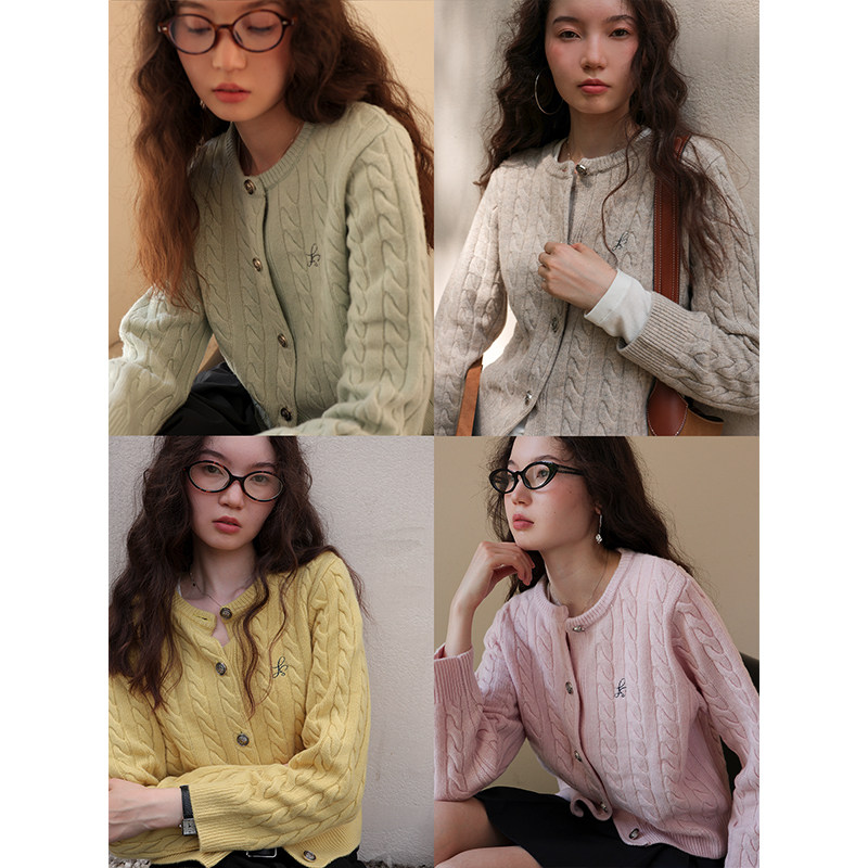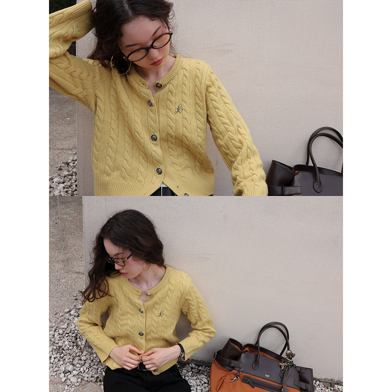 📚 素舶SUPERSCAPE 澳洲美利奴羊毛 奶油绞花小个子针织开衫