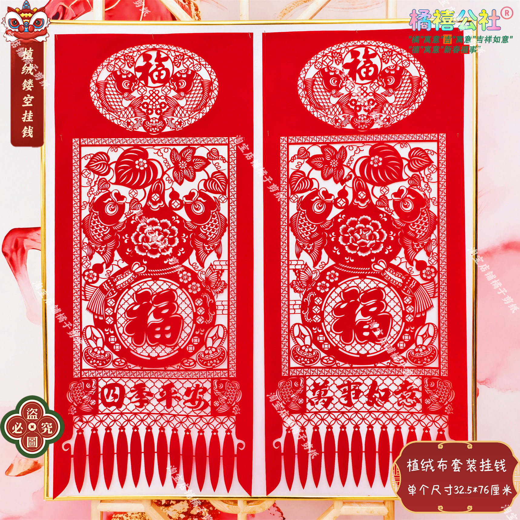 49¥ MF168 eeX7UOvss9f¥ https://m.tb.cn/h.7Ef6tsW 马年植绒布四联吊钱挂钱 2026春节天津剪纸窗花特色新年镂空装饰 --------------------- 【原售价】15.8元 【现售价】15.8元。