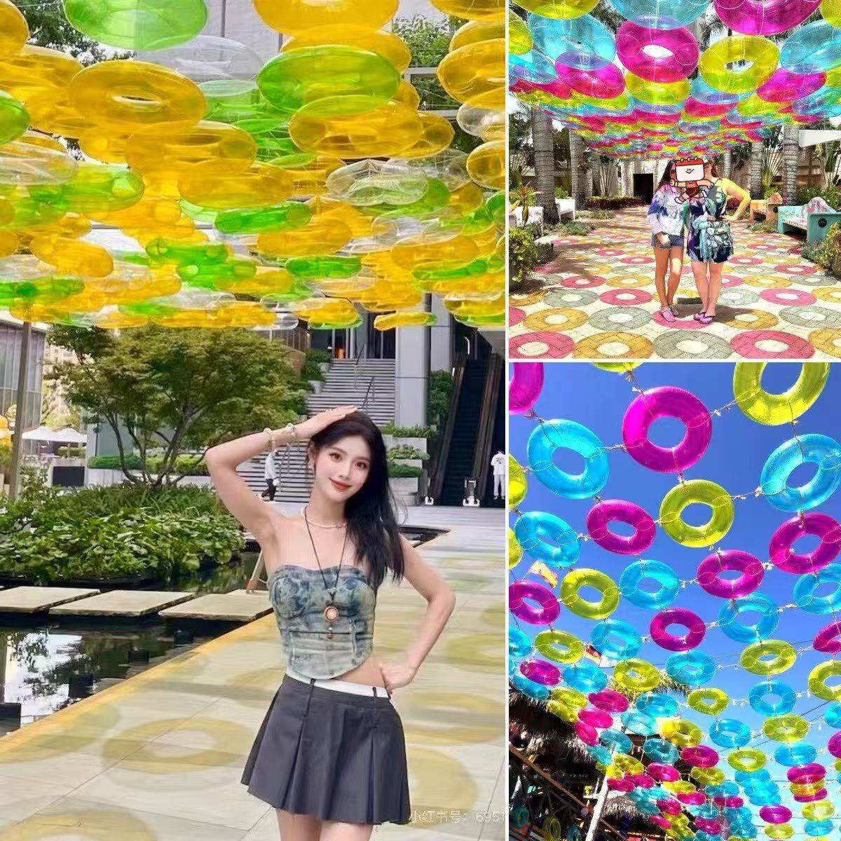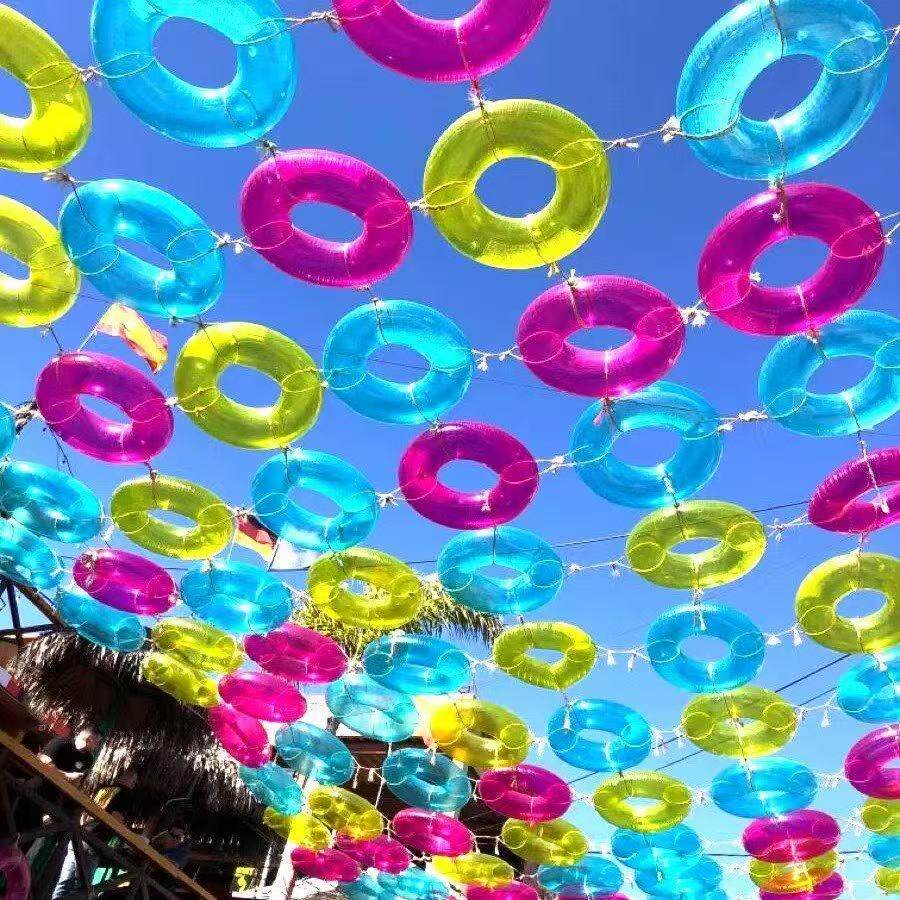 📚 彩色透明游泳圈天幕游乐场游泳池网红装饰引流打卡拍照道具