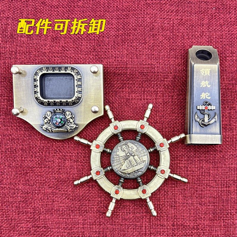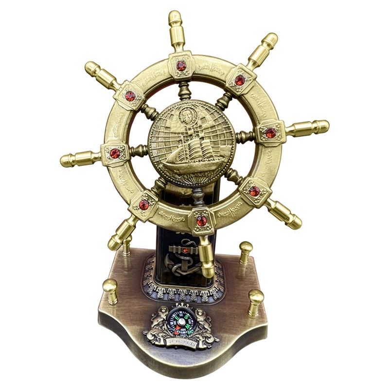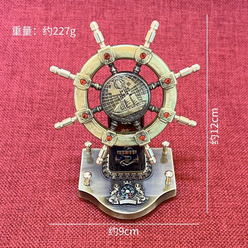 📚 一帆风顺纯黄铜领航舵创意船舵摆件旋转掌舵舵手航海装饰礼品
