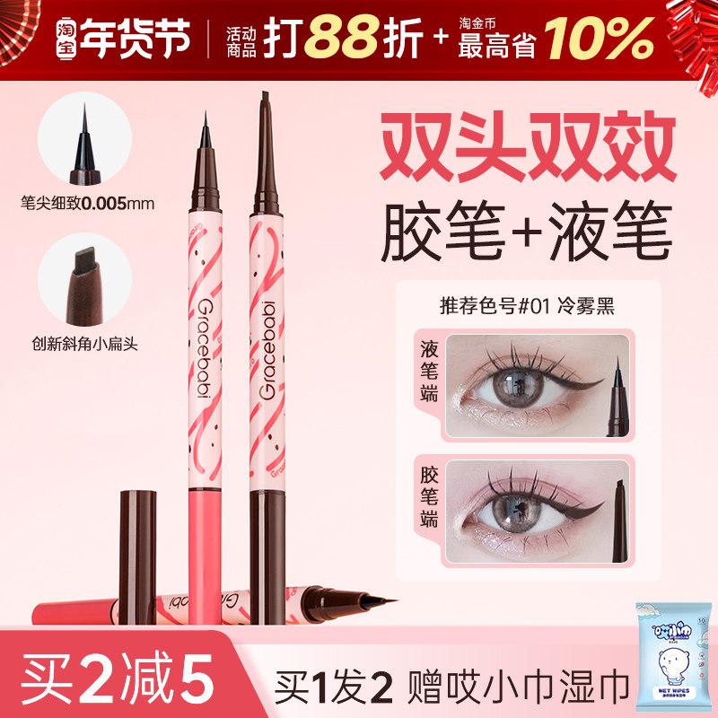 📚 Gracebabi双效眼线胶液笔持妆流畅不晕染二合一女瑰宝秘语