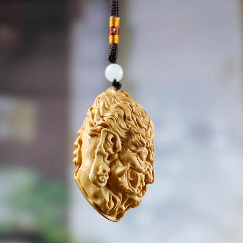 📚 黄杨木雕佛魔一念之间把玩件手把件男士文玩随身人物中式汽车挂件
