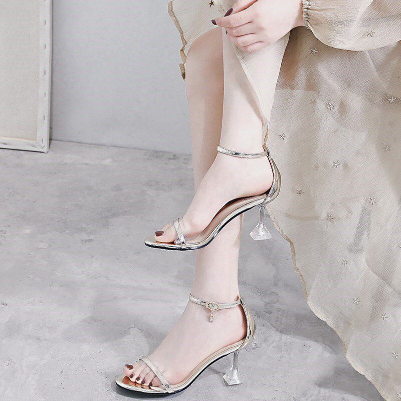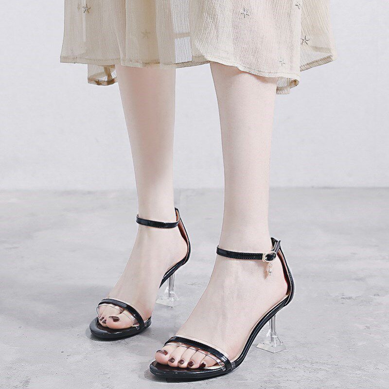 📚 透明跟凉鞋女小脚30小码313233大码40-41 43细跟T42一字扣高跟女