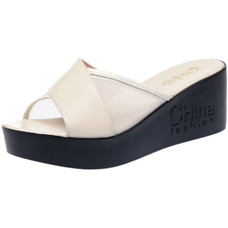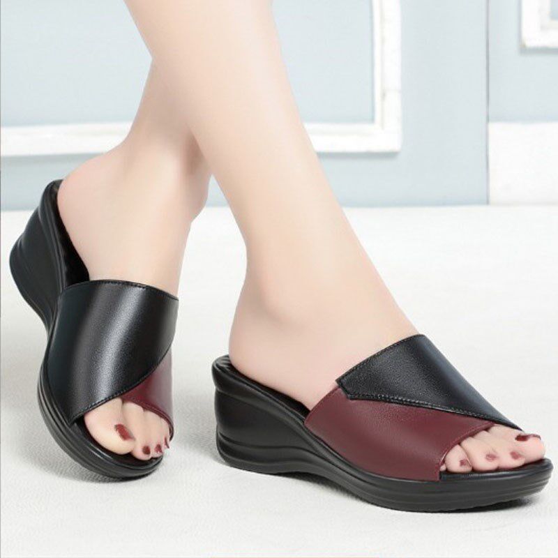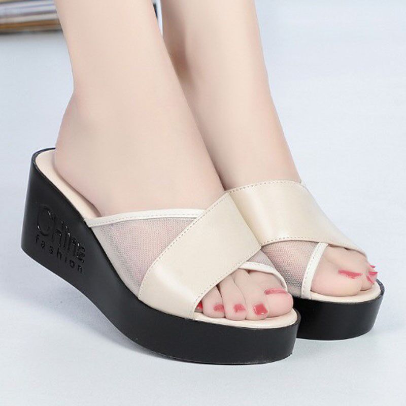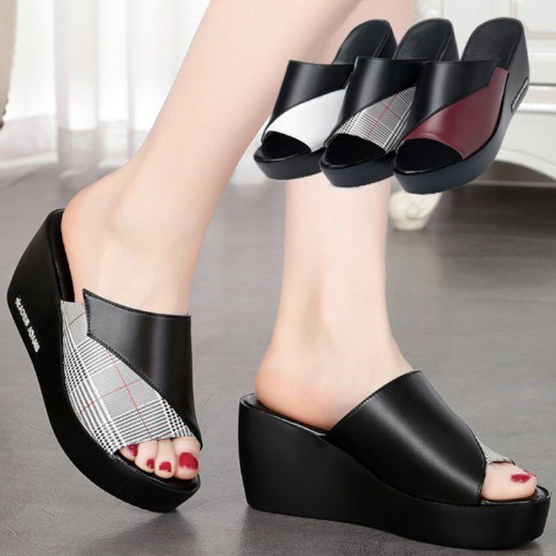 📚 韩版时尚女鞋特大码41 43坡跟凉鞋真皮高跟凉拖鞋40 42厚底松糕鞋