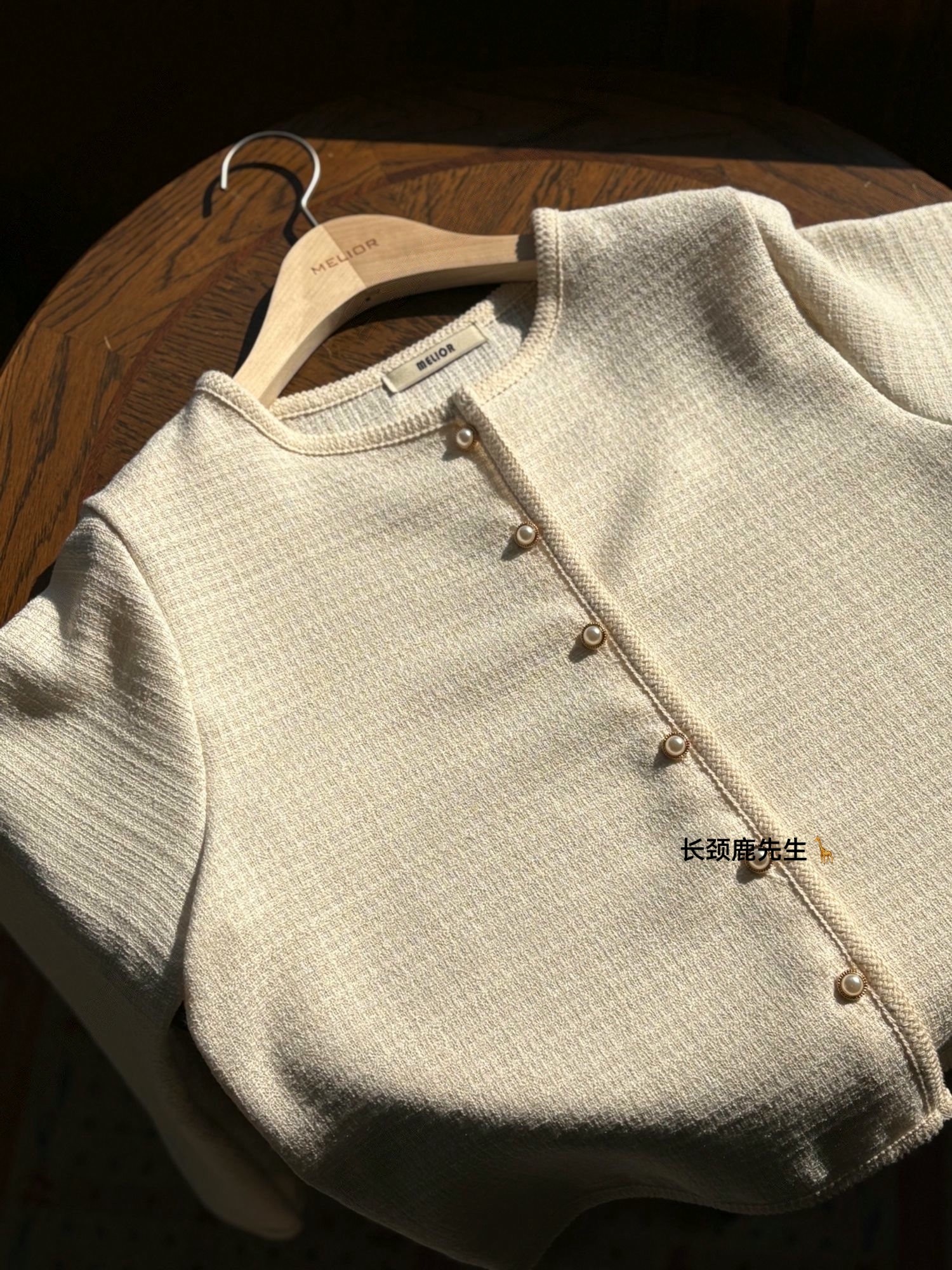 57¥ MF278 VA21UOSim4K¥ https://m.tb.cn/h.7vsCbzq 2025年秋冬新款韩国东大门直邮 melior镶边珍珠纽扣短外套 --------------------- 【原售价】182元 【现售价】182元。