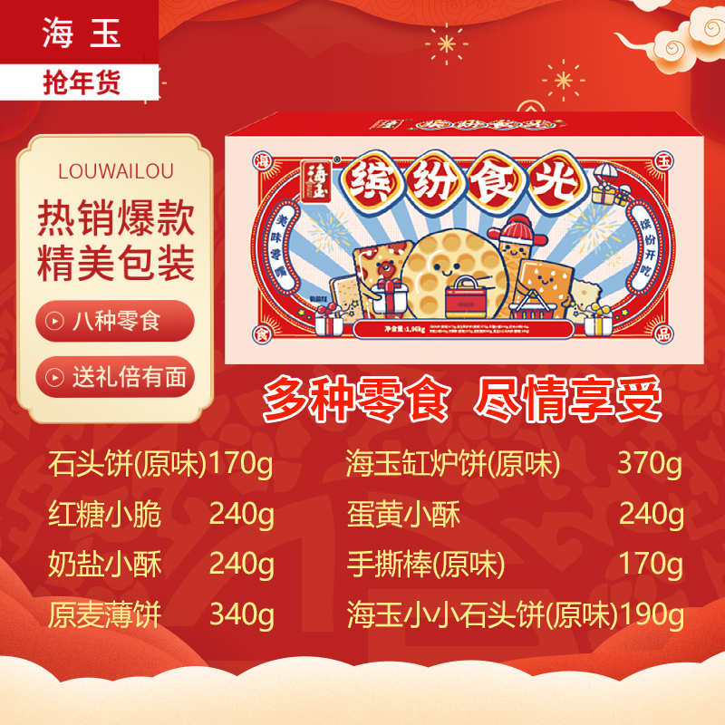📚 海玉礼盒包装1.96KG过节送人高档多种小零食饼干糕点食品新年送礼