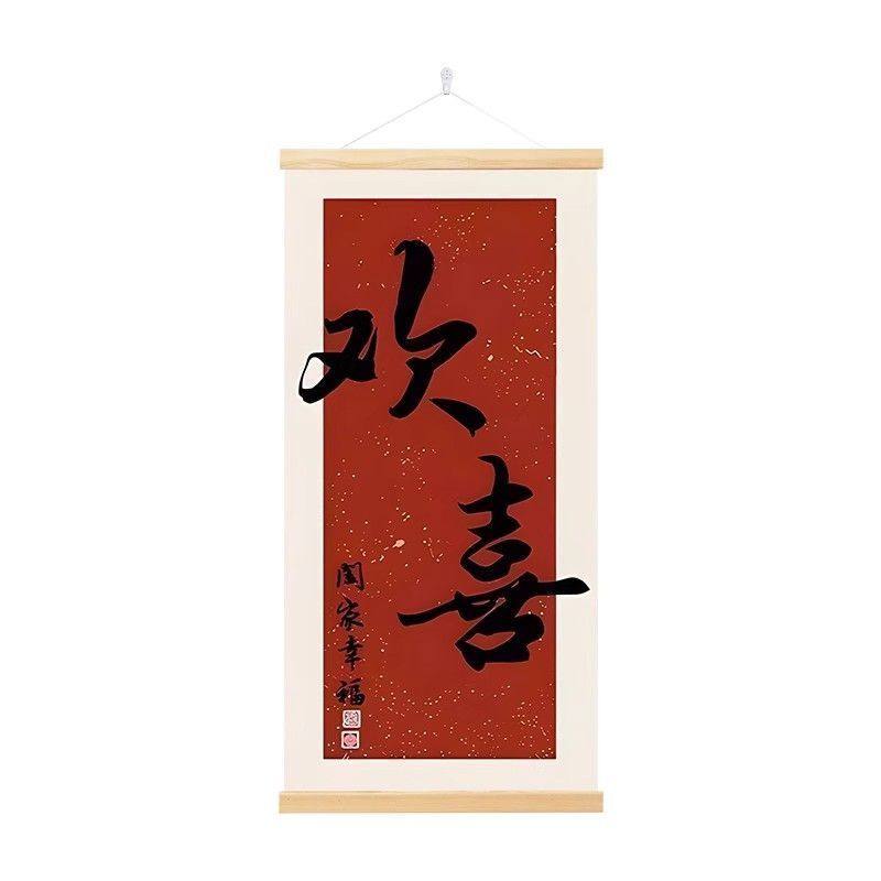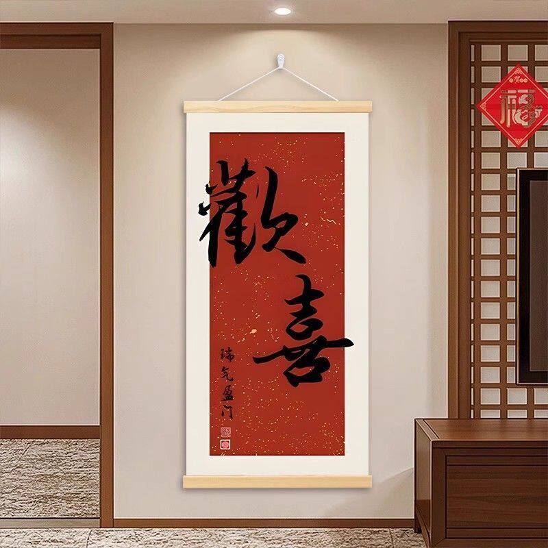 📚 新中式欢喜玄关走廊竖式喜庆挂画寓意好入户客厅背景墙壁装饰壁画