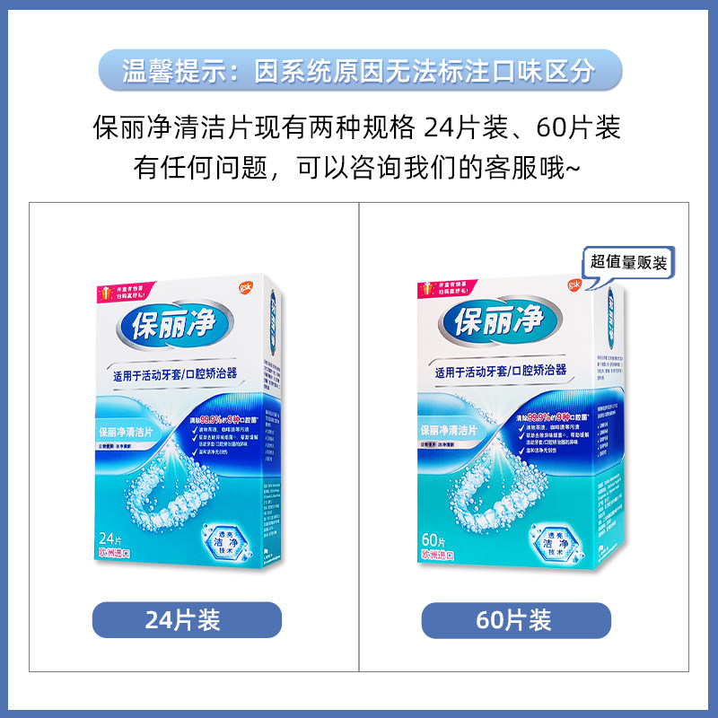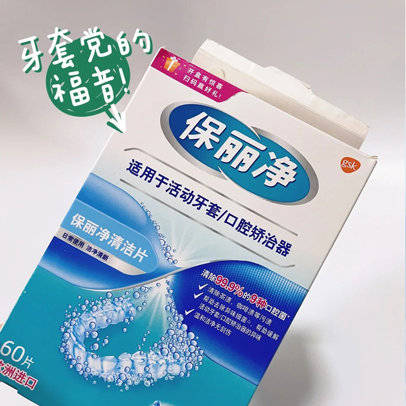 📚 保丽净欧洲进口清洁片60片正畸活动牙口腔套透明保持器义齿泡腾片