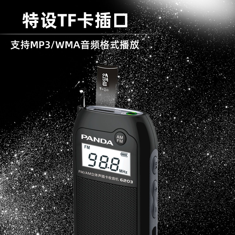 📚 熊猫6203迷你FM立体声收音机新款充电插卡调频广播半导体老人专用