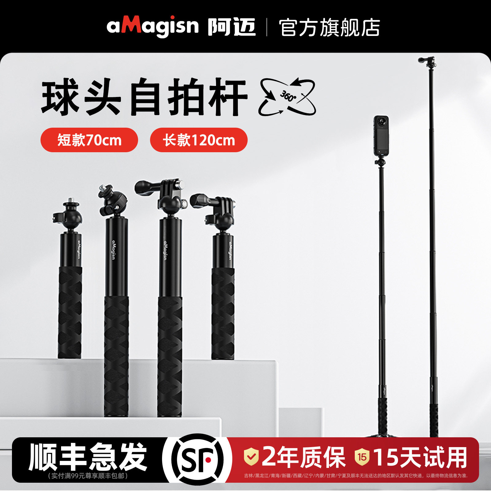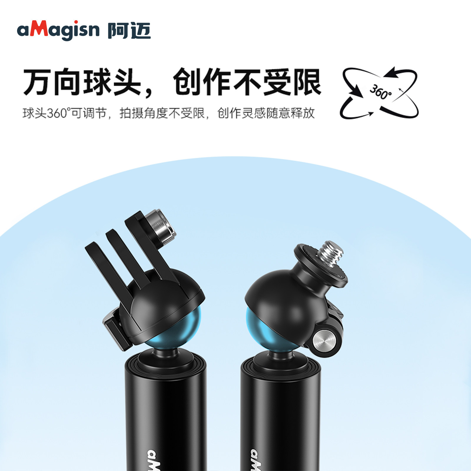 📚 aMagisn阿迈球头转向自拍杆Insta360/GoPro/DJI Osmo Action5 Pro/4/3手持自拍延长杆配件