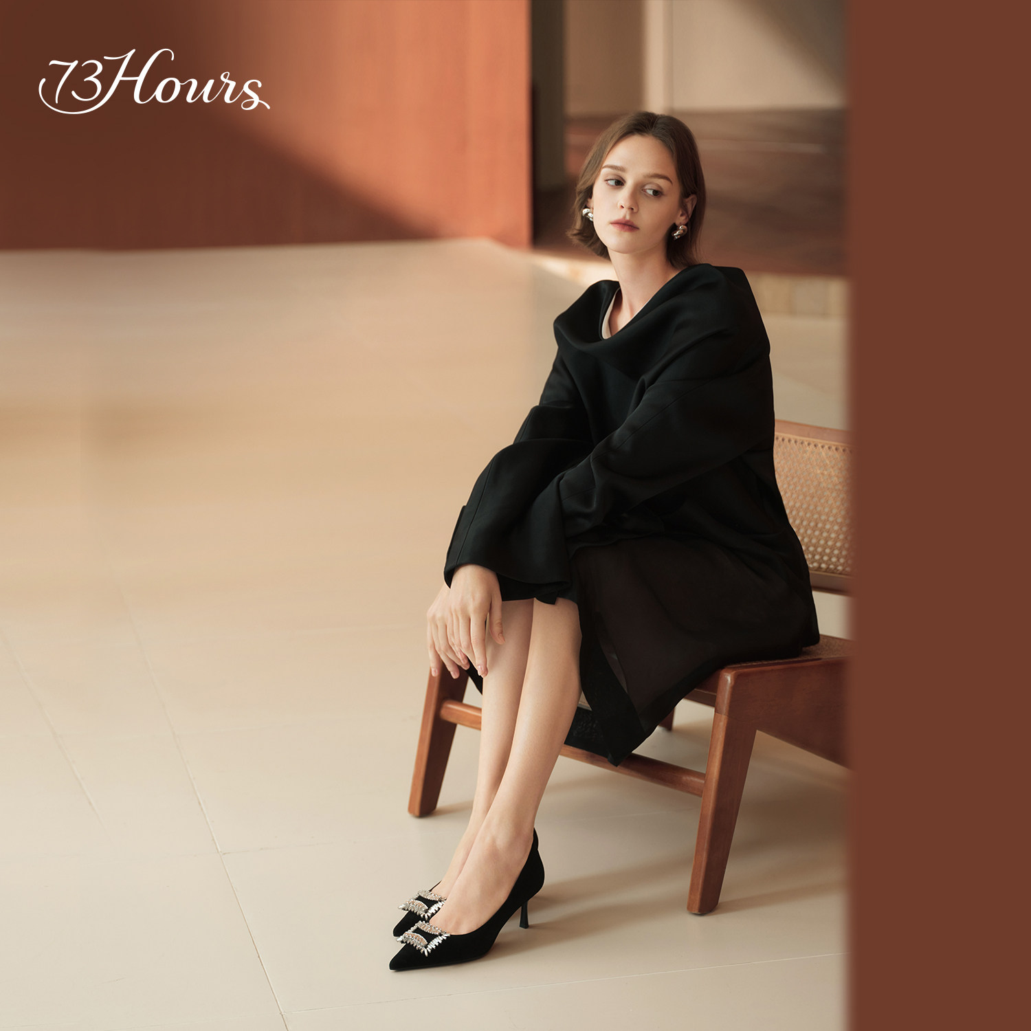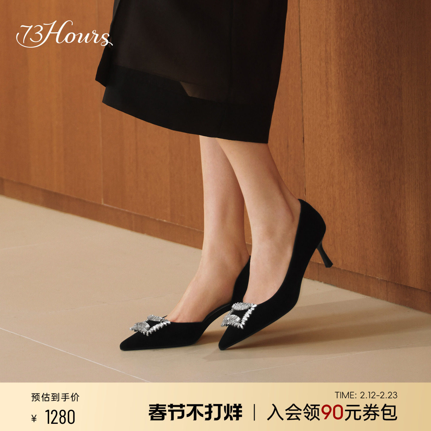 📚 73hours女鞋递进浪漫2026春季新款尖头黑色细高跟鞋女不累脚单鞋