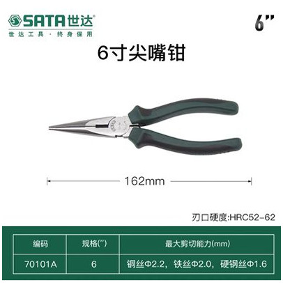 📚 sata世达尖嘴钳70101A电工专用老虎钳工业斜口钳工具钳子大全6寸