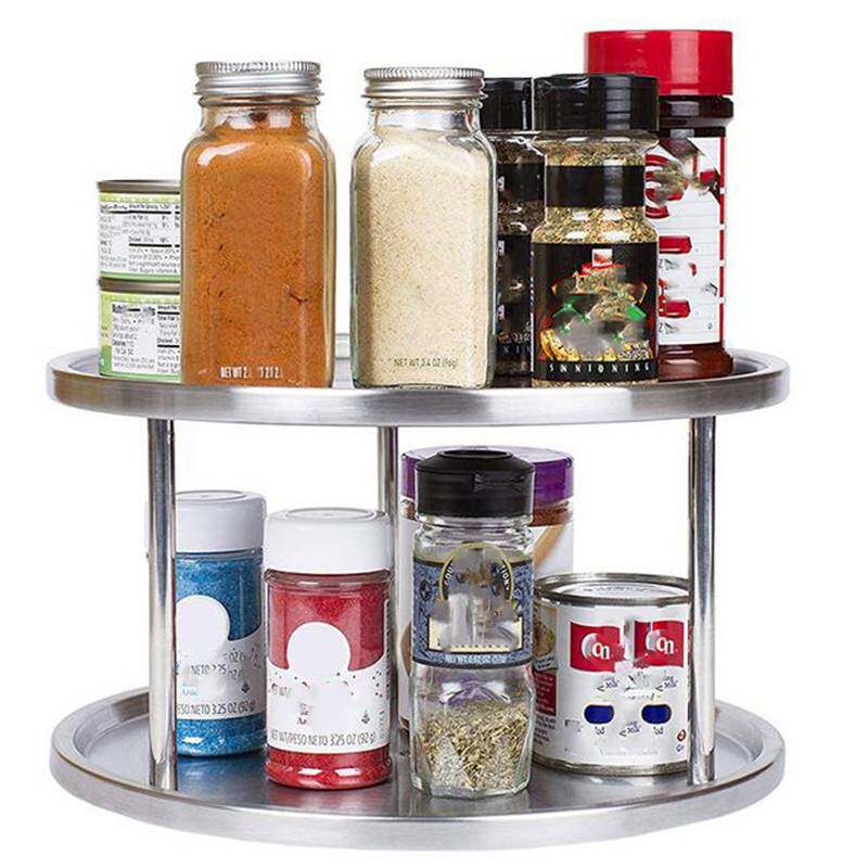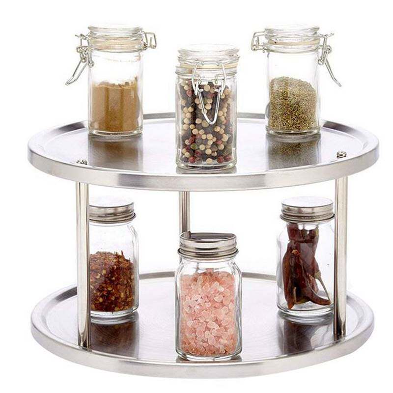 📚 Spice Rack Stainless Steel Organizer Tray 360 Degree Turntab