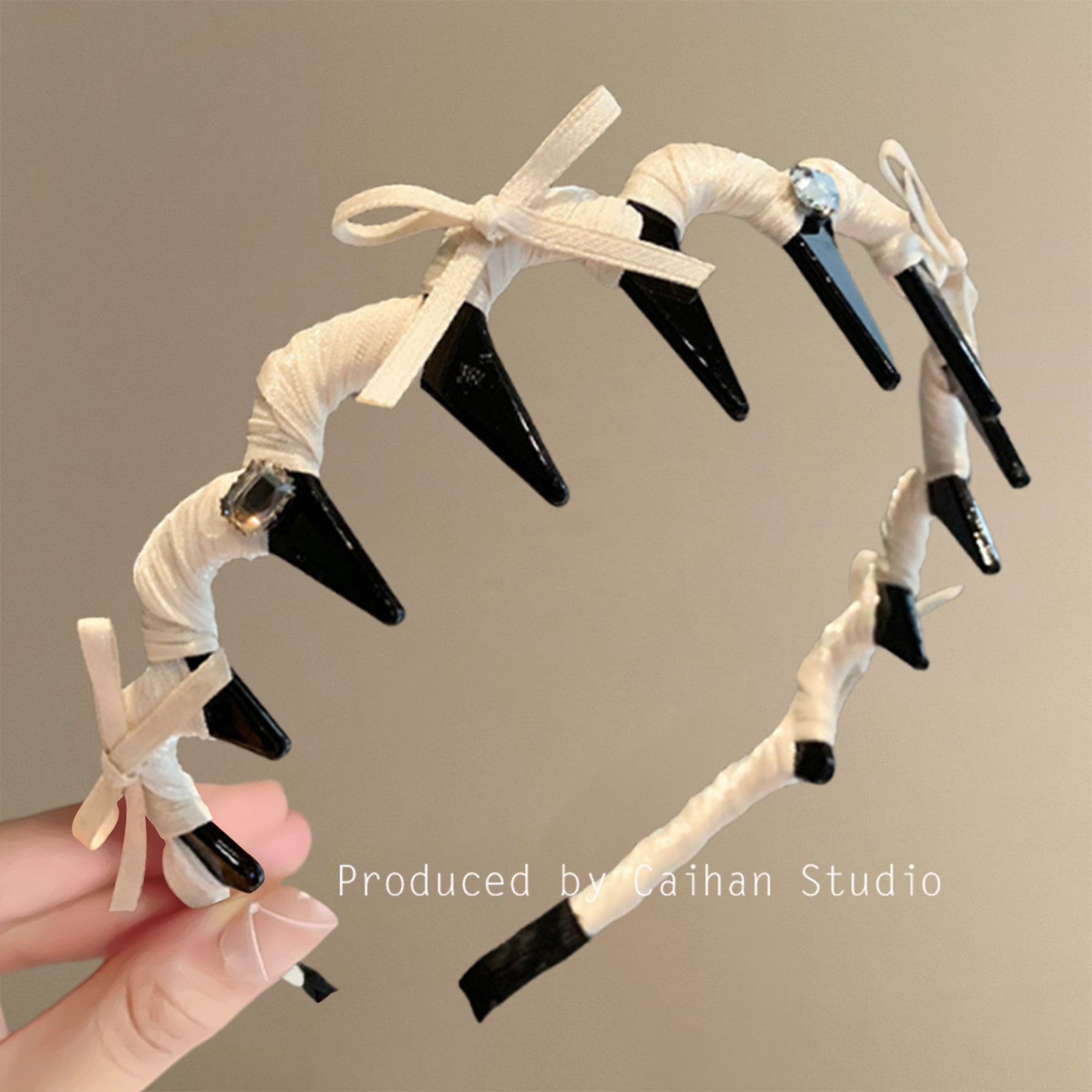 📚 归国白月光~复古芭蕾风防滑带齿发箍韩国轻奢水钻高颅顶旅行发卡