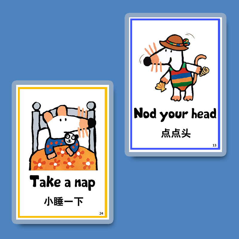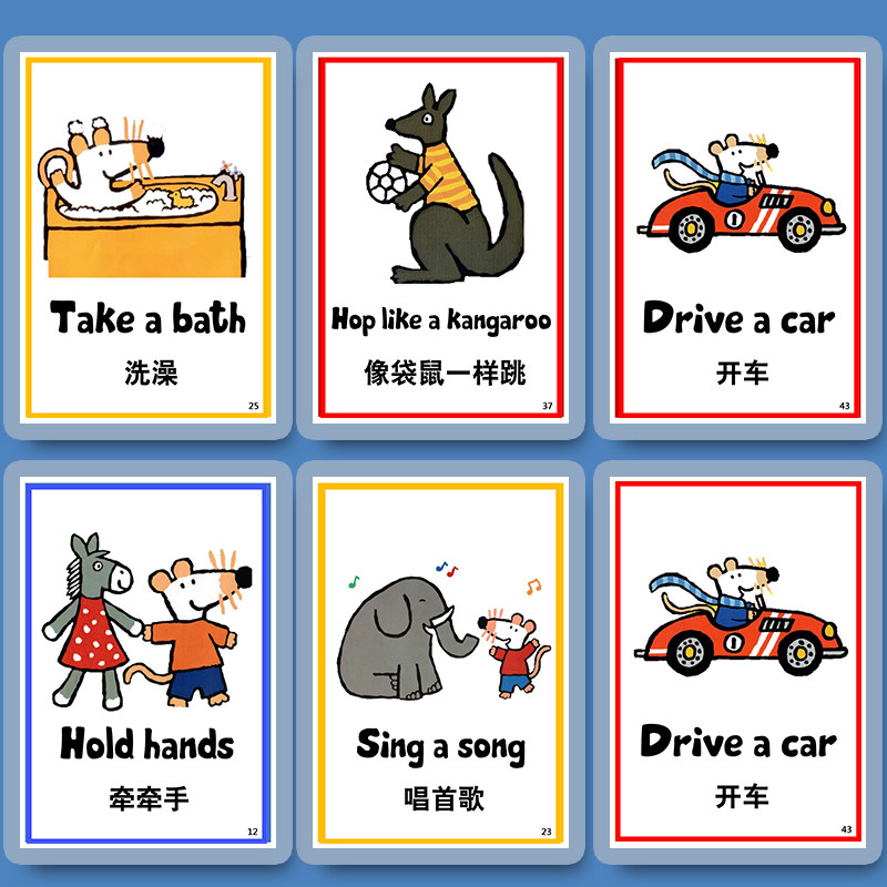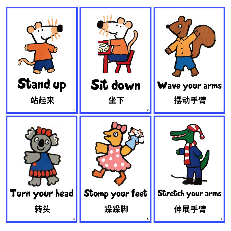 📚 TPR情景口语卡片英语句子小鼠波波动作训练指令认知点读挂图海报