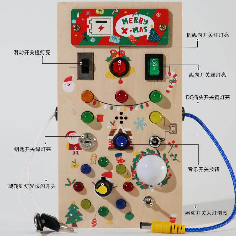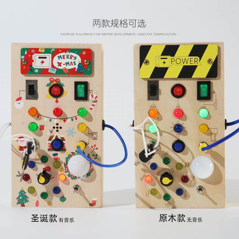 📚 儿童木质忙碌板开关灯电路板幼儿园生活技能精细动作早教益智玩具