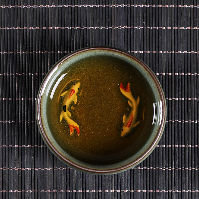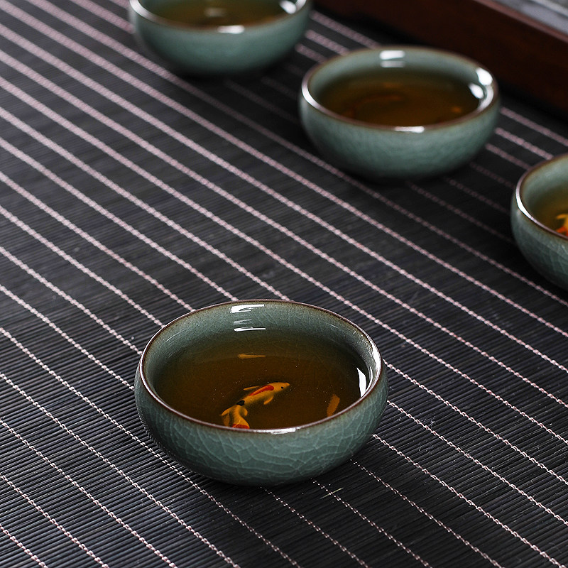 📚 青瓷品茗杯主人杯小鱼茶杯功夫茶杯陶瓷泡茶铁胎冰裂彩鲤中式茶碗