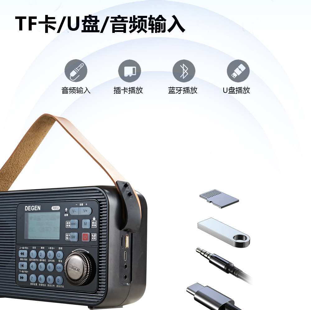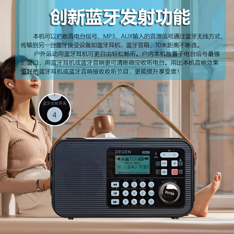 📚 德劲R802全波段蓝牙发射收音机老人听书机支持蓝牙耳机收听地电台