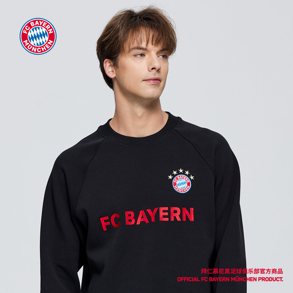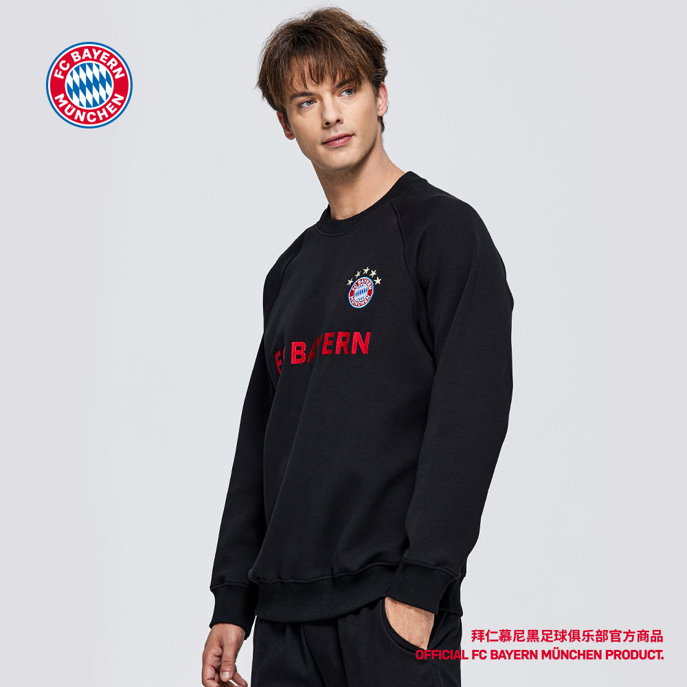 📚 拜仁慕尼黑足球俱乐部|秋冬保暖经典黑色圆领加厚长袖卫衣