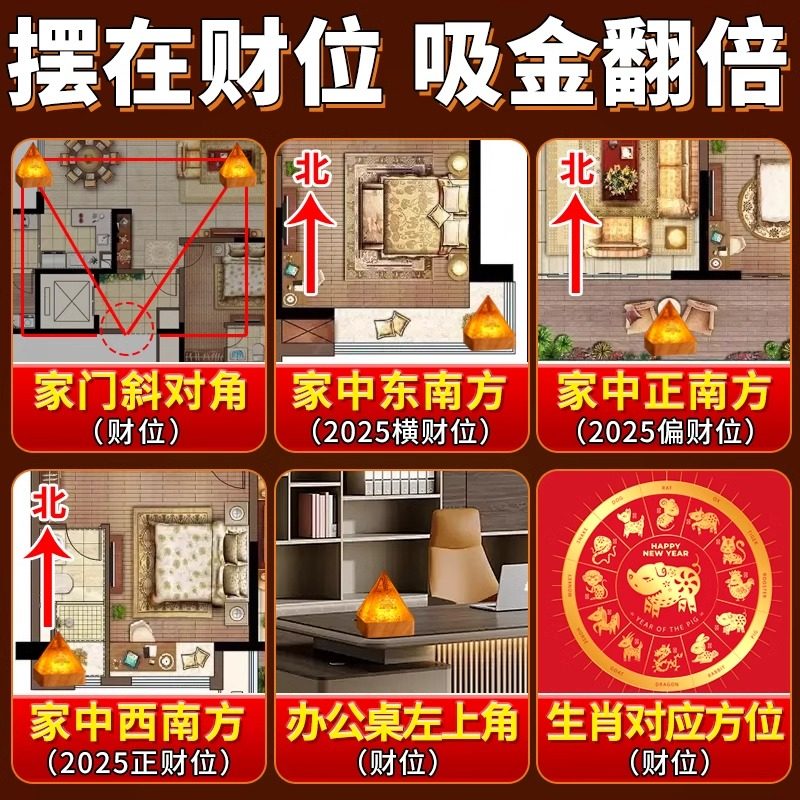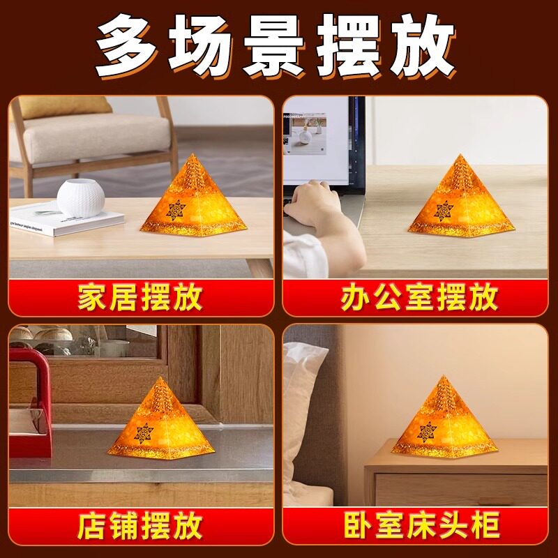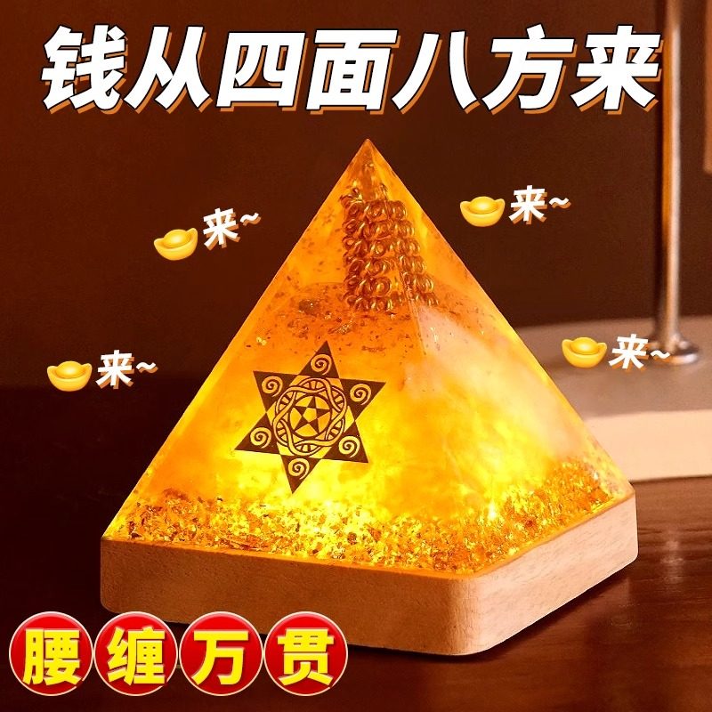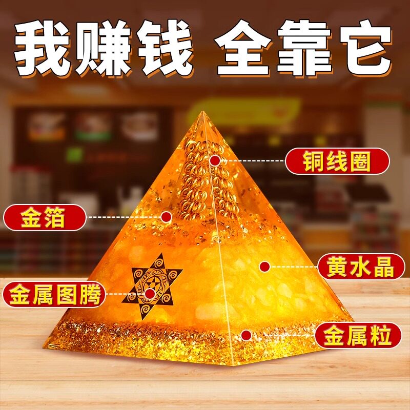 📚 金字塔招财聚财摆件黄水晶聚宝盆八方来财办公室工位十二生肖玄关
